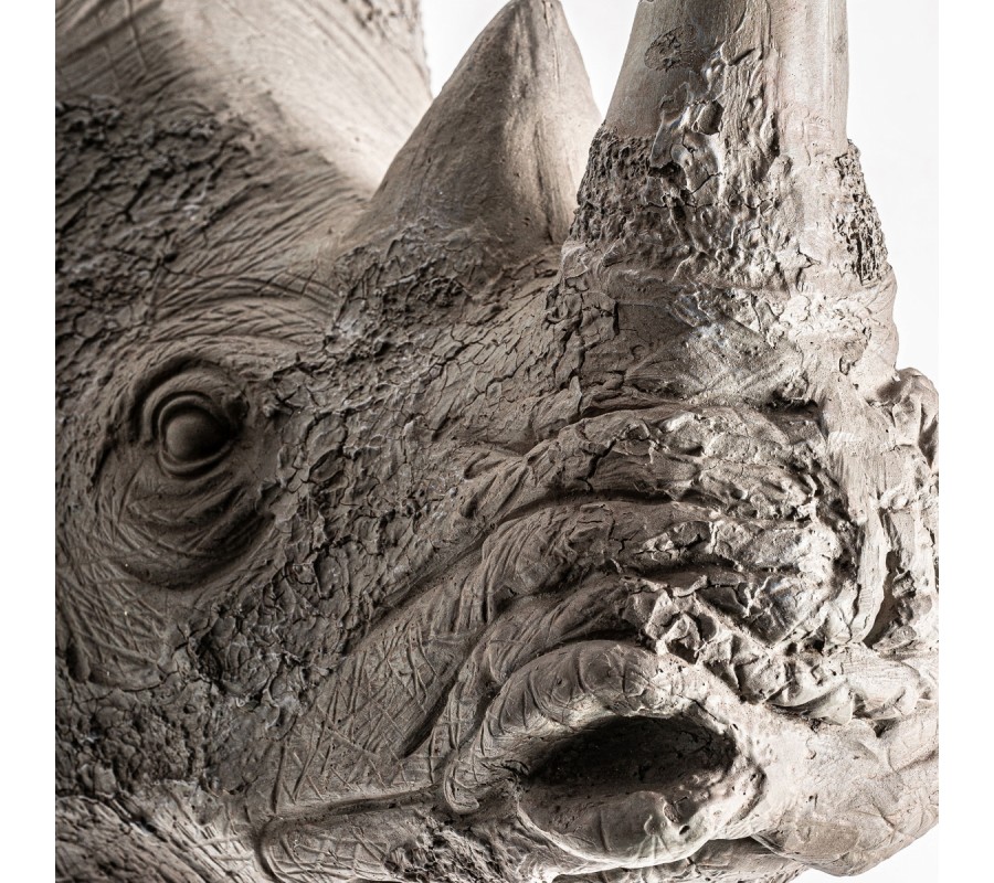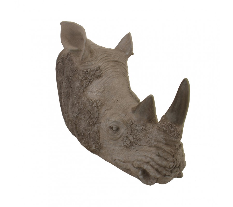 Dizajnová etno nástenná socha Rino predstavuje realisticky spracovanú hlavu nosorožca v sivej farbe, vyrobenú zo živice. Socha zaujme detailným vypracovaním štruktúry kože aj precíznymi rohmi, ktoré verne imitujú prirodzený vzhľad tohto majestátneho zvieraťa.