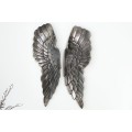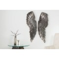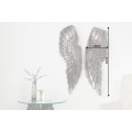 Vintage nástenná dekorácia Angel Wings z kovu v striebornej patinovanej farbe s detailným reliéfom pier 65 cm