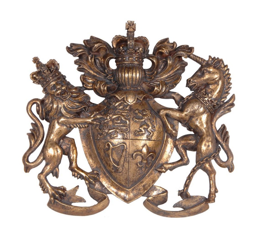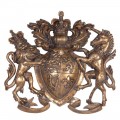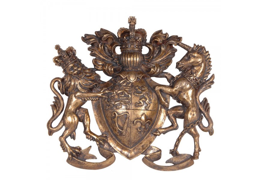 Štýlová dekorácia na stenu Erb je znamenitým kúskom, ktorý krásne zapadne do každého historicky orientovaného priestoru. Erb je vyrobený zo živice so zlatým efektom a figurujú v ňom motívy leva a koňa. Detailné zdobenie a kvalita prevedenia vás prenesie v čase do zámkov a vášmu interiéru dodá jedinečný historický nádych.