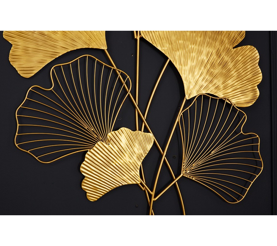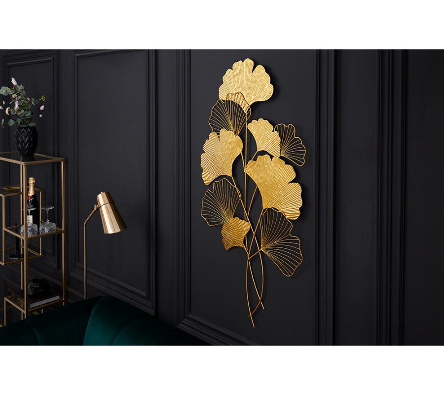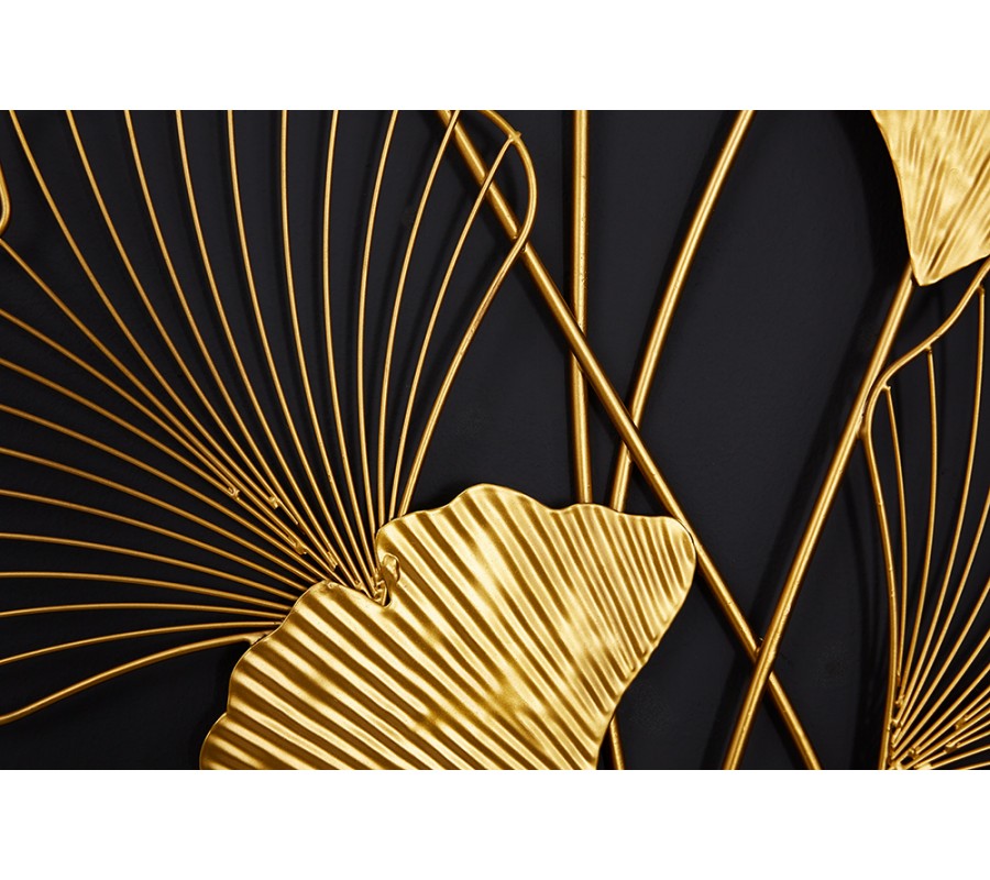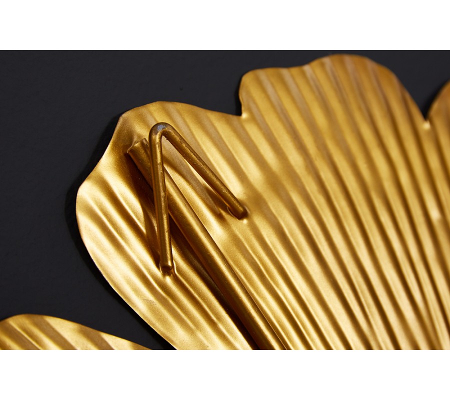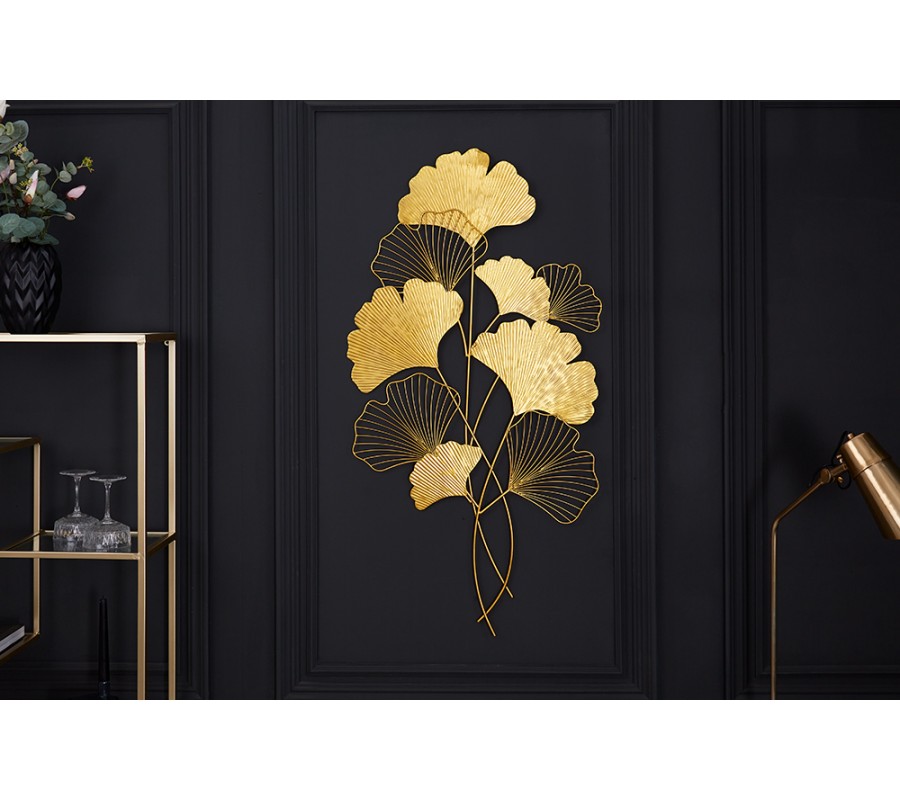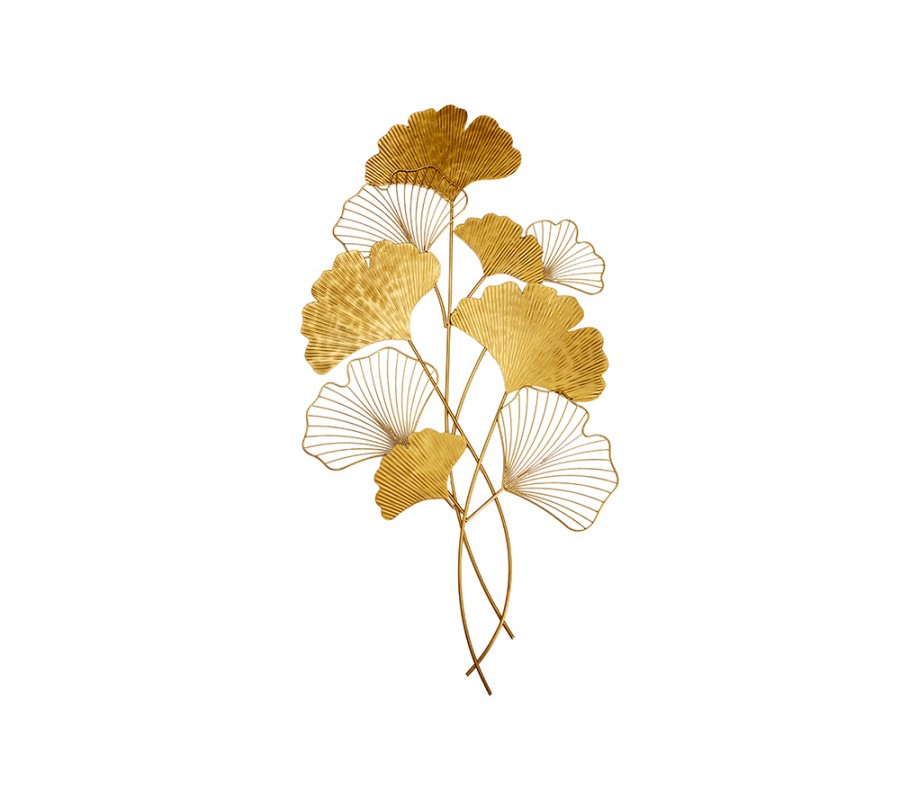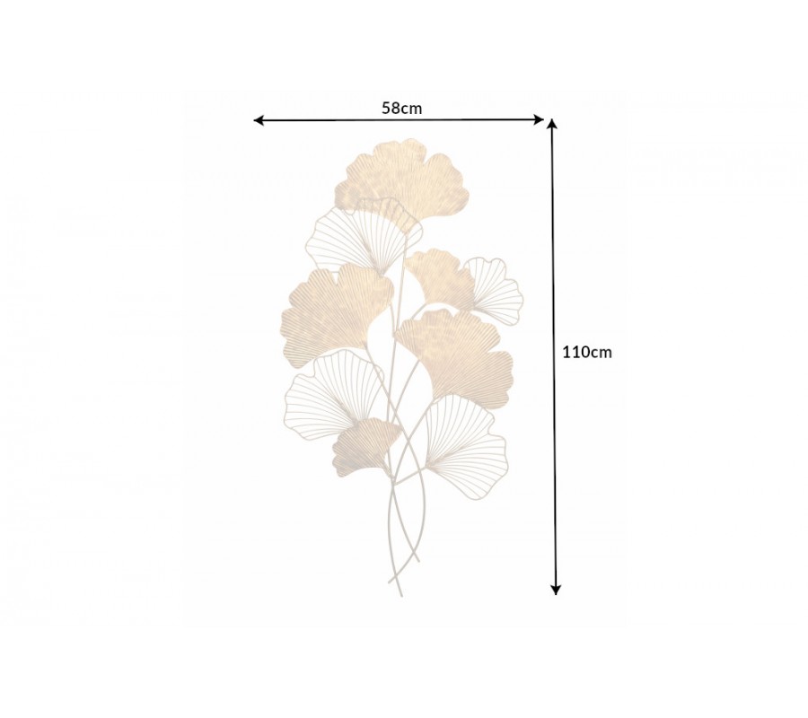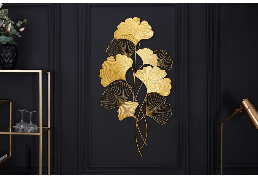 Moderná florálna nástenná kovová dekorácia Biloba I zlatej farby 110cm