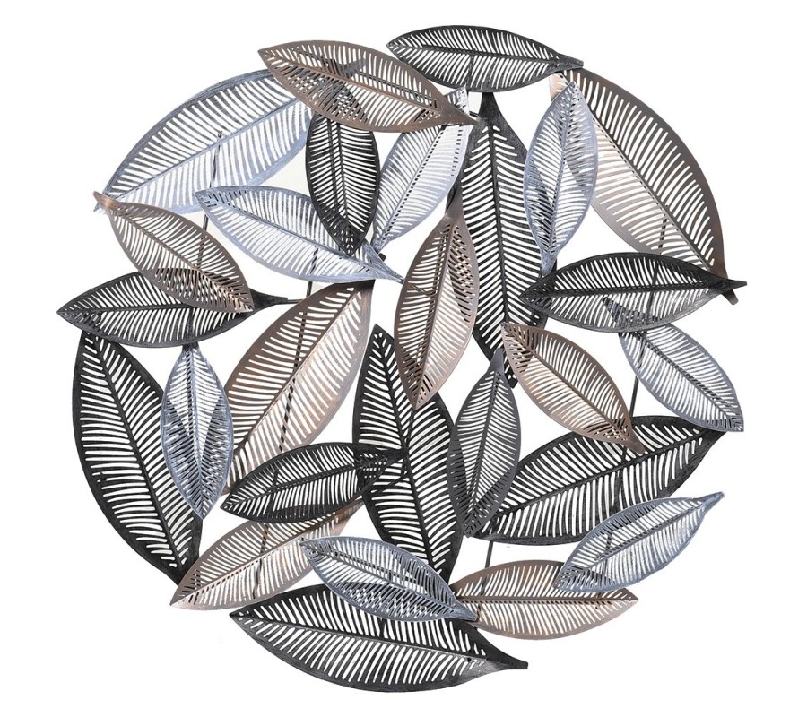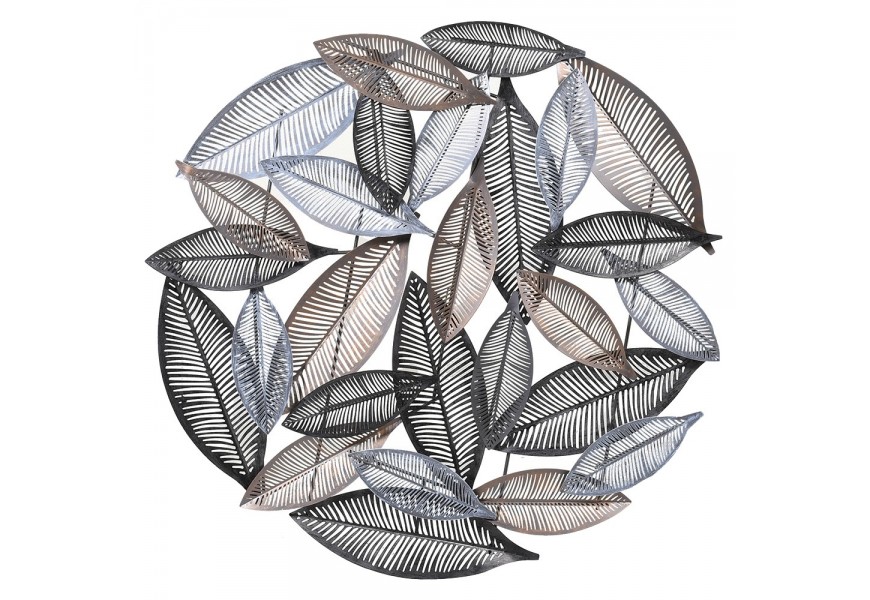 Art-deco listová nástenná dekorácia Satordi strieborno-zlatej farby kruhového tvaru 95cm