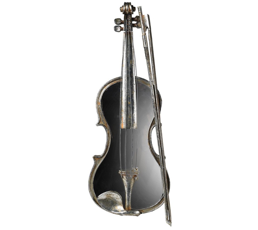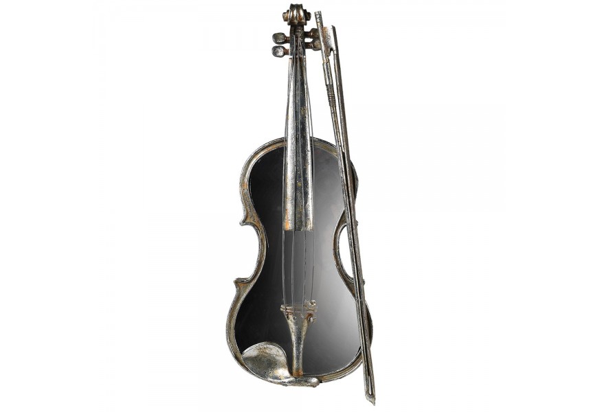 Zrkadlová strieborná závesná dekorácia husle Vivaldi vo vintage štýle s patinou 58 cm