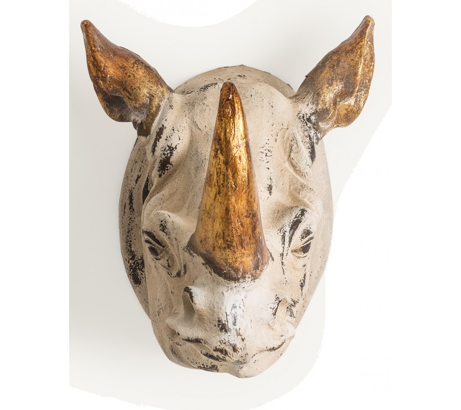 Výrazná nástenná socha Rhino predstavuje realisticky modelovanú hlavu nosorožca a je navrhnutá ako originálny etno dekoratívny prvok do interiéru. Vyrobená je z kvalitnej živice s dôrazom na detail, čo umožňuje verné zobrazenie mimiky, záhybov kože a textúry srsti. Povrch je upravený v jemnej krémovo-béžovej farbe, ktorú dopĺňajú tmavé akcenty, čím vzniká autentický, jemne zvetraný vzhľad s nádychom prírodného charakteru.