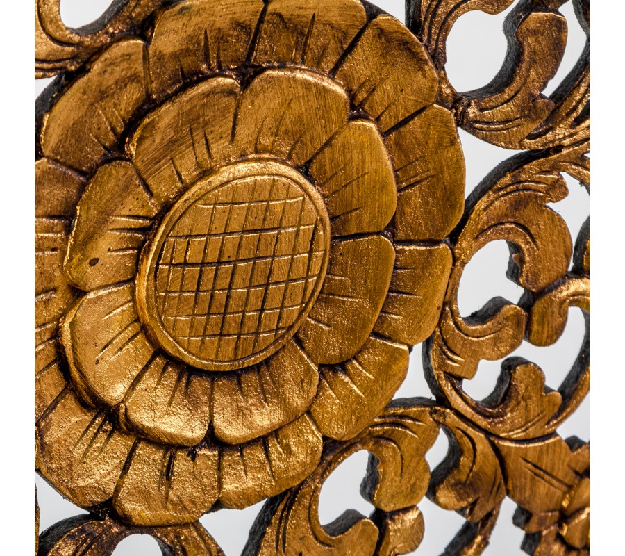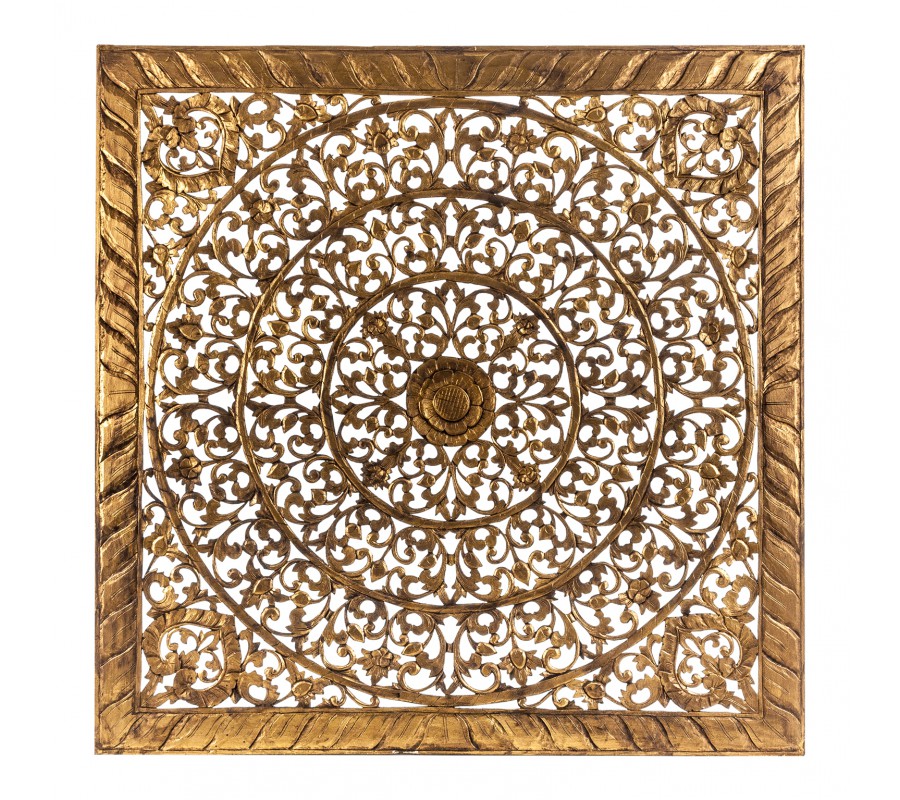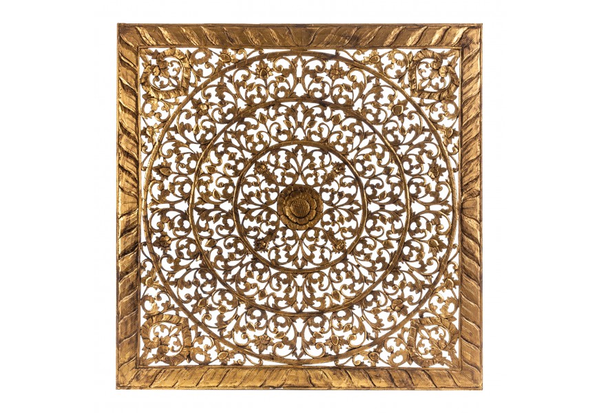 Nástenná dekorácia 160x160 vyrobená z vyrezávaného dreva v zlatom prevedení.