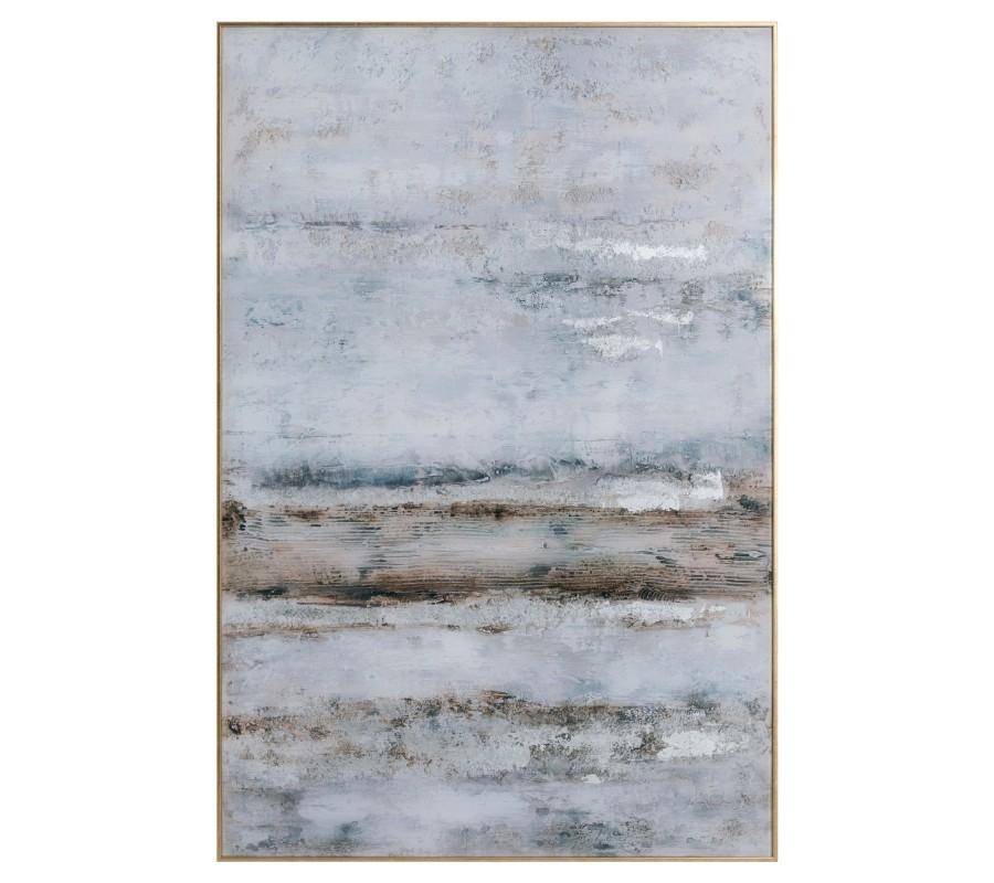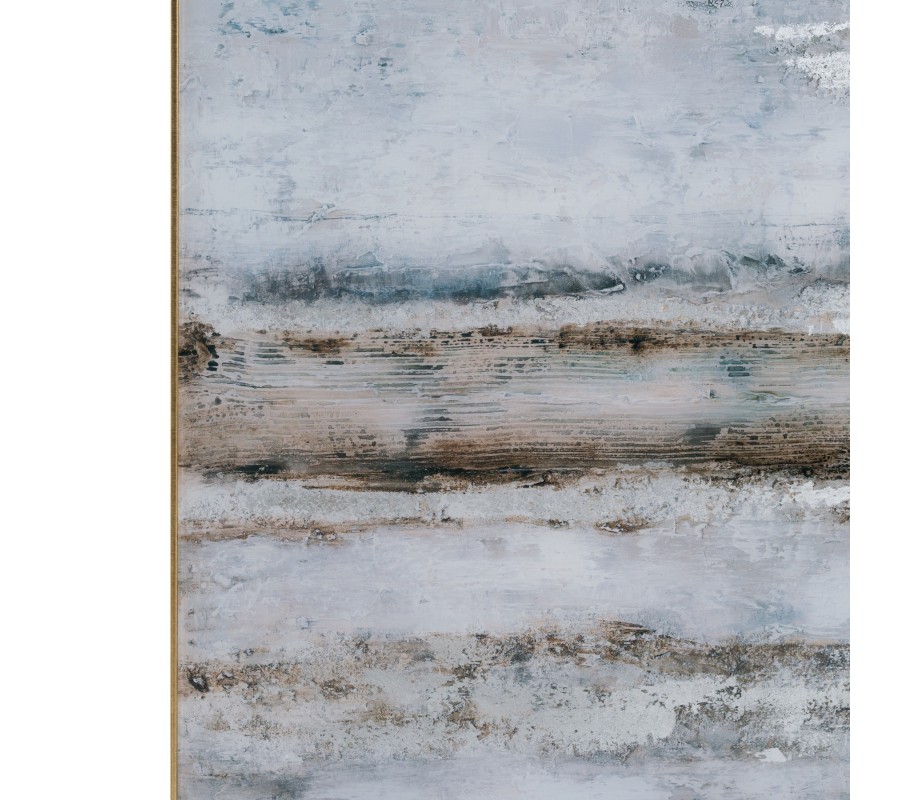 Vkusný sivý obraz je naozaj jedinečný, nakoľko je maľovaný ručne a každý kus sa tak stáva skutočným originálom, čo mu dodáva na nepopierateľnej autenticite. Dizajnové abstraktné ťahy sú doplnené minimalistickým zlatým rámom.