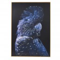 Nástenný obraz v modernom štýle zobrazuje realistického modrého papagája na čiernom pozadí. Fotka je vytlačená na plátno a tenký rám obrazu v okrovej farbe je vyrobený z borovicového dreva. Tmavší obraz sa hodí do svetlejších miestností, ktorej steny majú neutrálnu, bielu alebo napríklad žltú pastelovú farbu. Obraz odporúčame umiestňovať do moderne zariadených bytov, kde sa nachádzajú nábytky v industriálnom, alebo minimalistickom štýle. Obraz sa taktiež hodí napríklad k modernej sedačke, ktorá má námornícku modrú farbu a je trendom tohto roku. Obraz s väčším rozmerom odporúčame umiestniť do spálne, alebo obývacej miestnosti, rozhodne Vám oživí priestor. Okrem bytových priestorov je možné obraz umiestniť aj do hotelových interiérov, či barov, zaručene do priestorov vnesie nádych a pocit exotiky.