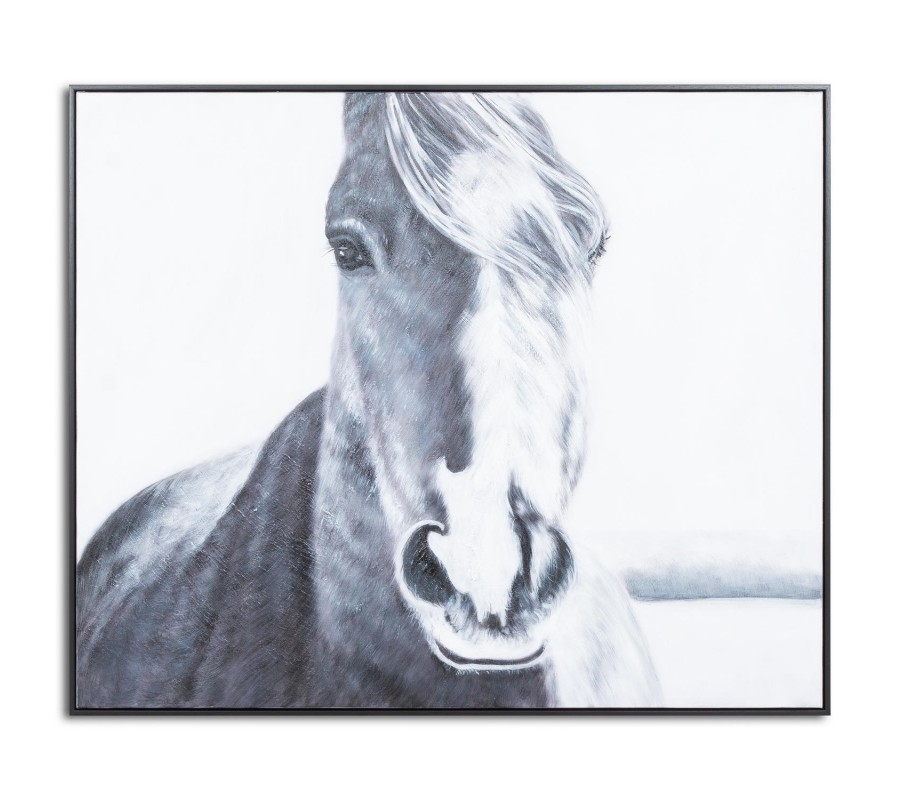 Ručne maľovaný obraz Kôň s čiernym dreveným rámom 100x120