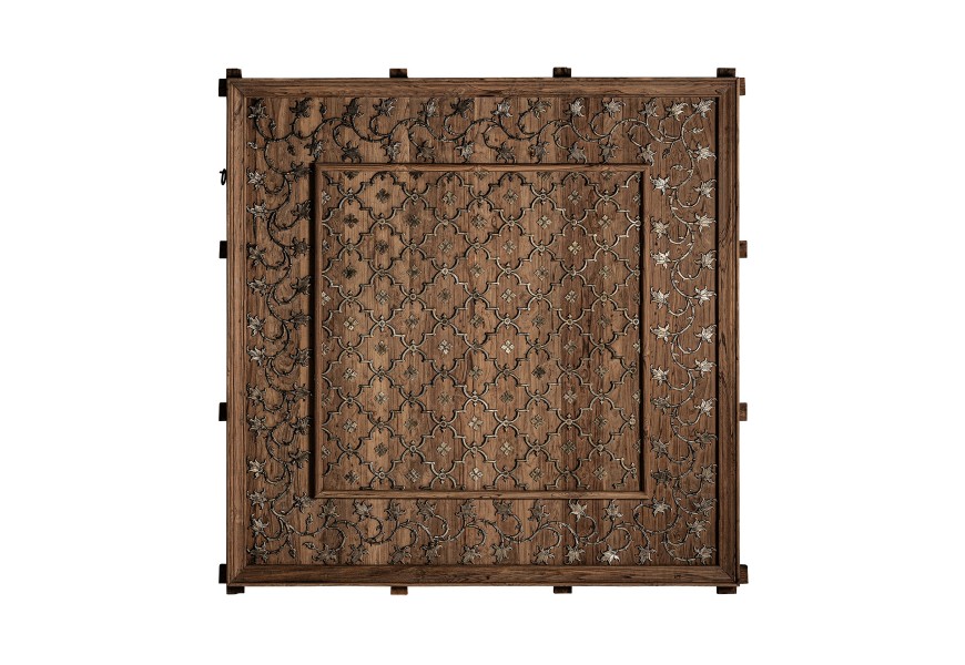Ak máte vo vašom interiéri nevyužité streny, ktoré potrebujú doplniť dekoračným kúskom, zaujať vás môže nástenná dekorácia Severus. Tento unikátny obraz pozostáva z masívnej štvorcovej plochy z mangového dreva, ktorá sa nesie v prírodnej hnedej farbe. Svojím nahrubo opracovaným vzhľadom do vašich priestorov vnesie autentický naturálny nádych a dopomôže k vytvoreniu útulného nádychu domova. Exotickú drevinu dopĺňa nádherné detailné mosadzné zdobenie pripomínajúce ťahavé rastliny a orientálne motívy. Aj preto je nástenná dekorácia Severus vhodným doplnkom predovšetkým do orientálne alebo etno ladených priestorov, kde krásne zapadne a obohatí vaše steny. Výborne doplní miestnosti zariadené masívnym nábytkom v kombinácii s čalúnenou sedačkou či kreslom, výraznými zlatými alebo mosadznými doplnkami a farebnými prírodnými textíliami.
