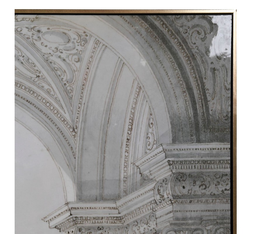 Obraz Pillars je unikátnym kúskom, ktorý vyniká svojím barokovým motívom zachytávajúcim architektonické prvky v najmenších detailoch. Hlavným vizuálnym prvkom obrazu sú masívne stĺpy, ktoré nesú mohutné oblúky so zložitými ornamentálnymi detailmi, typickými pre barokovú architektúru. Každý stĺp je detailne zachytený s reliéfnymi vzormi a dekoratívnymi hlavicami, ktoré pridávajú štruktúre hlboký trojrozmerný efekt. Hlavice stĺpov sú zdobené jemnými líniami a filigránovými vzormi, ktoré sú pre barok charakteristické.
