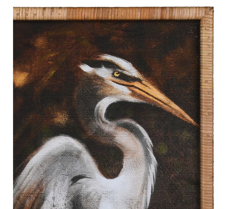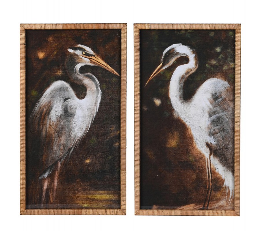 Koloniálny set dvoch obrazov Heron s volavkami v ratanovom hnedom ráme 90 cm