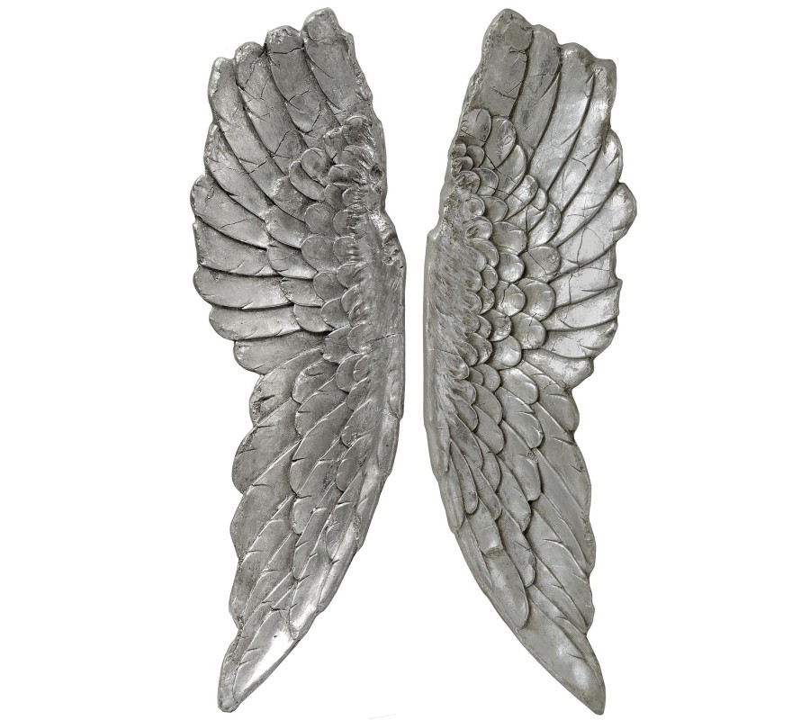 Luxusná strieborná dekorácia anjelské krídla je dokonalým doplnkom do akéhokoľvek priestoru. Tento masívny kúsok plný pompéznej elegancie vytvorí jedinečnú alternatívu obrazov, poličiek, zrkadiel či iných nástenných dekorácií.