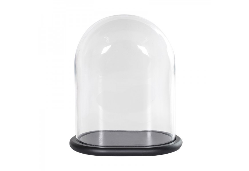 Moderná dizajnová dekoratívna kupola Besancon so skleneným vrchnákom a drevenou čiernou podložkou z dreva Paulownia 32 cm