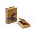 Sadu tvoria dve krabičky v tvare kníh. Zaujímavým detailom je, že veko sa otvára rovnakým spôsobom, ako sa otvára obálka knihy. Menšia krabičku je možné uložiť do väčšej. Povrch je potiahnutým ekokožou s efektom zámerného zostarnutia, ktorý dodáva dekorácii vintage vzhľad. Na oboch kusoch je zobrazený vlak prichádzajúci do stanice v starožitne pôsobiacom sépiovom hnedom prevedení.