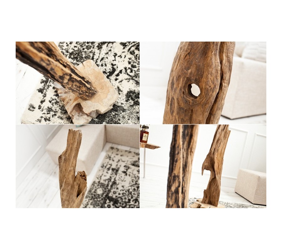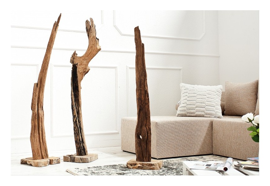 Jedinečná dizajnová socha Reef z masívneho kusu prírodného, neopracovaného teakového dreva je pre vás ideálnou voľbou pokiaľ hladáte unikátnu dizajnérsku dekoráciu, a zároveň chcete do interiéru vniesť kúsok prírody. Svojim vzhľadom sa skvelo hodí do moderných, ale napríklad aj koloniálne ladených priestorov. Nakoľko ide o prírodný materiál, je každá socha originálnym kúskom a jej vzhľad sa môže líšiť. Praskliny, zárezy a iné nedokonalosti sú zámerným dizajnérskym prvkom. Výška sochy sa pohybuje v rozmedzí 100-125cm v závislosti od použitého kusu dreva.
