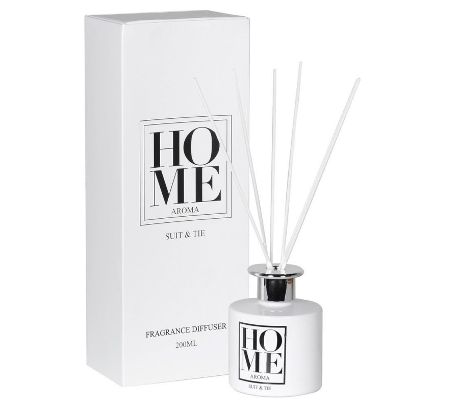 Aromatický difúzer Suite & Tie v elegantnej bielej sklenenej fľaši prinesie do vášho interiéru sviežosť a sofistikovanú vôňu. Minimalistický dizajn s čiernym nápisom „HOME“ a strieborným uzáverom pôsobí moderne a vkusne, vďaka čomu je vhodný do každého typu priestoru.