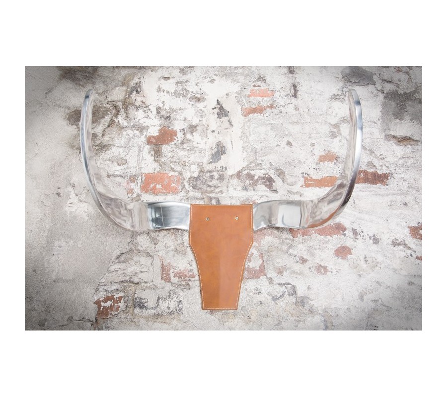 Dizajnová dekorácia v podobe býčej hlavy je určite originálnym kúskom, minimálne v tomto prevedení. Kovové rohy sú doplnené hlavou z pravej kože.