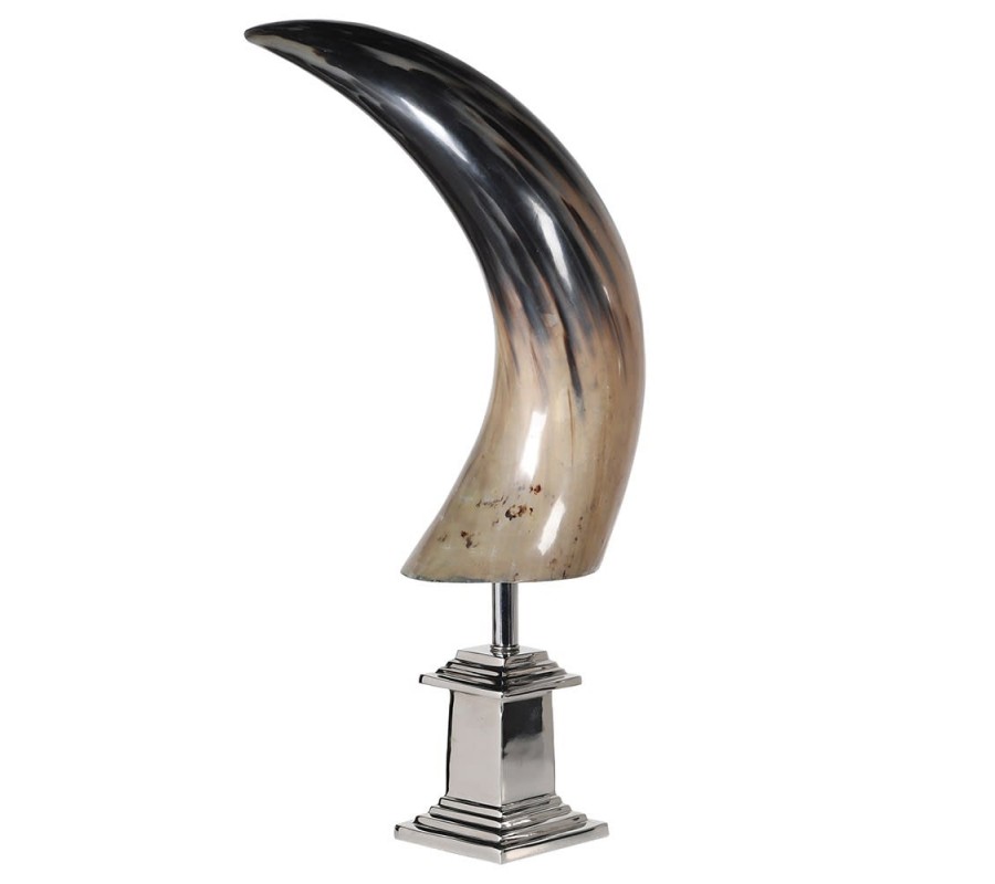Jedinečná dekorácia Buffalo horn zaujme každého milovníka unikátnych a výstredných doplnkov. Prírodný roh sa nesie v odtieňoch hnedej a čiernej s naturálne pôsobiacim tieňovaným prechodom a je umiestnený na kovovom podstavci. Dekorácia krásne vynikne v luxusných pracovniach, hotelových či iných reprezentatívnych priestoroch, ale svoje miesto si nájde aj v obývačke na rodinnom krbe či knižnici. Zaručene vynikne v každom luxusnom priestore a zaujme nejedného návštevníka!
