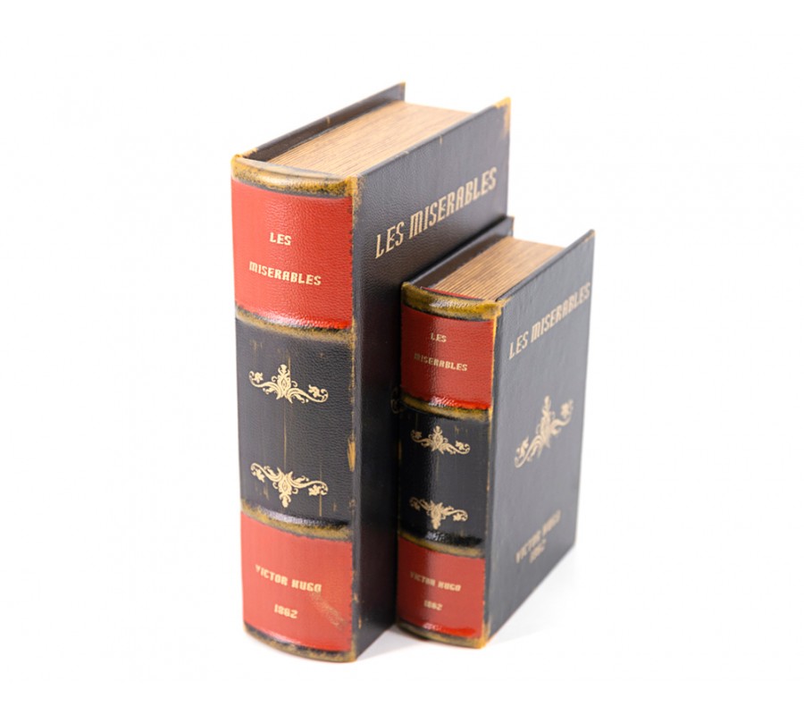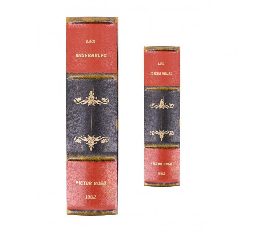 Dekoratívny set dvoch kníh s motívom diela Bedári od Victora Huga je nie len krásnym dizajnovým doplnkom milovníkov literatúry, ale taktiež môže slúžiť aj ako šperkovnica so svojím vnútorným úložným priestorom. Obal setu kníh s vintage povchovou úpravou sa nesie v eko koženom prevedení tmavo modrej farby s prvkami červenej na chrbátiku kníh, pričom dizajn disponuje aj svetlo žltým štýlovým zdobením. Kniha Bedári bola prvý krát vydaná v roku 1862, pričom sa toto dielo od Victora Huga veľmi rýchlo stalo jedným z najlepších diel devätnásteho storočia. Pre zachytenie dobového vzhľadu odporúčame set kníh Bedári kombinovať do interiérov v koloniálnom, rustikálnom alebo vintage štýle s masívnym nábytkom tmavšej farby.