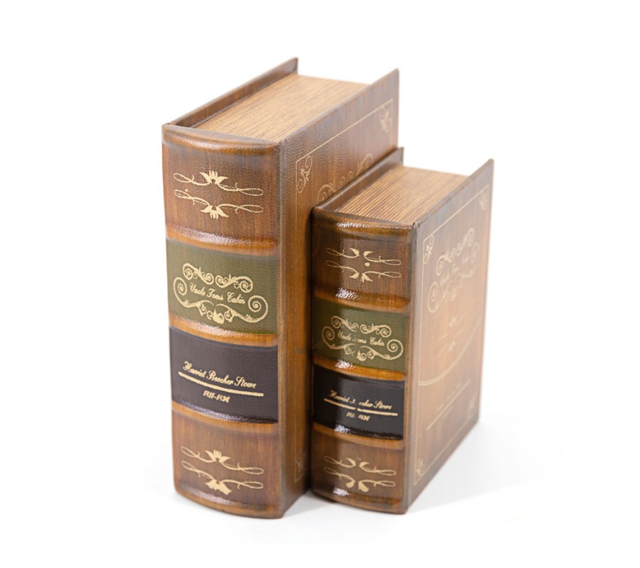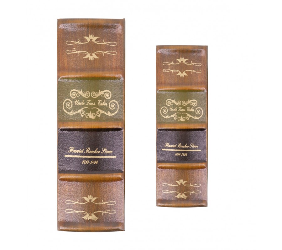 Dekoratívne knihy s motívom knihy Kabína strýka Toma je vynikajúcim doplnkom či už pre milovníkov klasickej literatúry, alebo pre milovníkov koloniálneho a rustikálneho nábytku. Set kníh je obalený v eko koženom obale v béžovej farbe s nádychom hnedej, pričom chrbátik obalu taktiež disponuje zeleným a tmavo fialovým pruhom. Štýlový dizajn setu je taktiež obohatený o svetlo žltý dekoratívny vzor. Set kníh sa nesie vo vzore knihy Kabína strýka Toma, čo je jeden z najdôležitejších diel Americkej histórie, dokonca sa dielo stalo druhou najpredávanejšou knihou devätnásteho storočia. Dá sa povedať, že dielo je šperkom literárnej histórie, no zároveň tématický set môže byť rovnakým šperkom či už vo forme dekorácie alebo šperkovnice vďaka vnútornému úložnému priestoru.