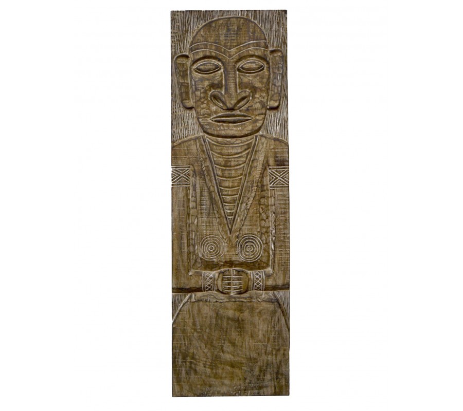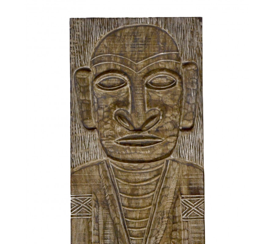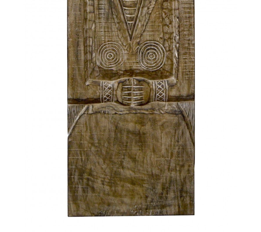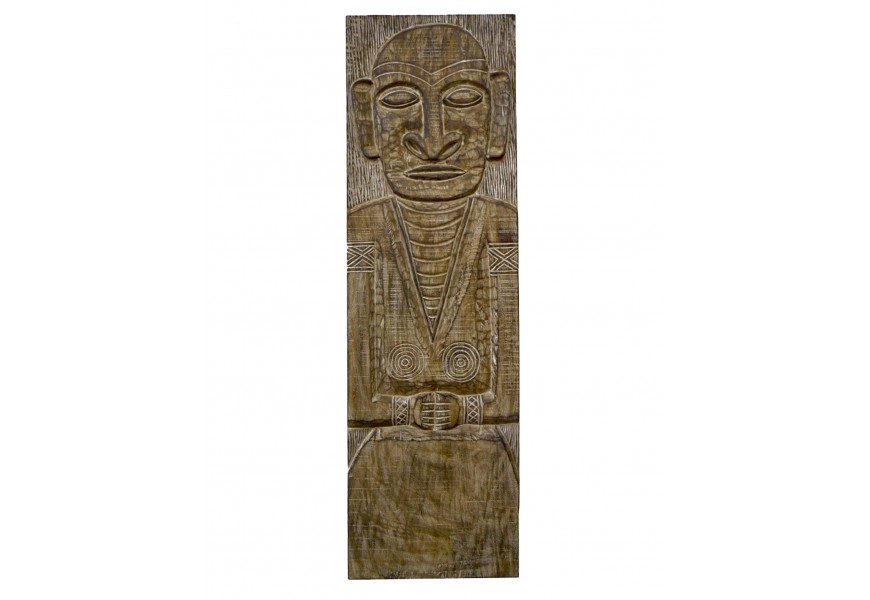 Dekoratívny etno vyrezávaný panel Isu s figurálnym motívom z teakového dreva v prírodnej hnedej farbe 165 cm