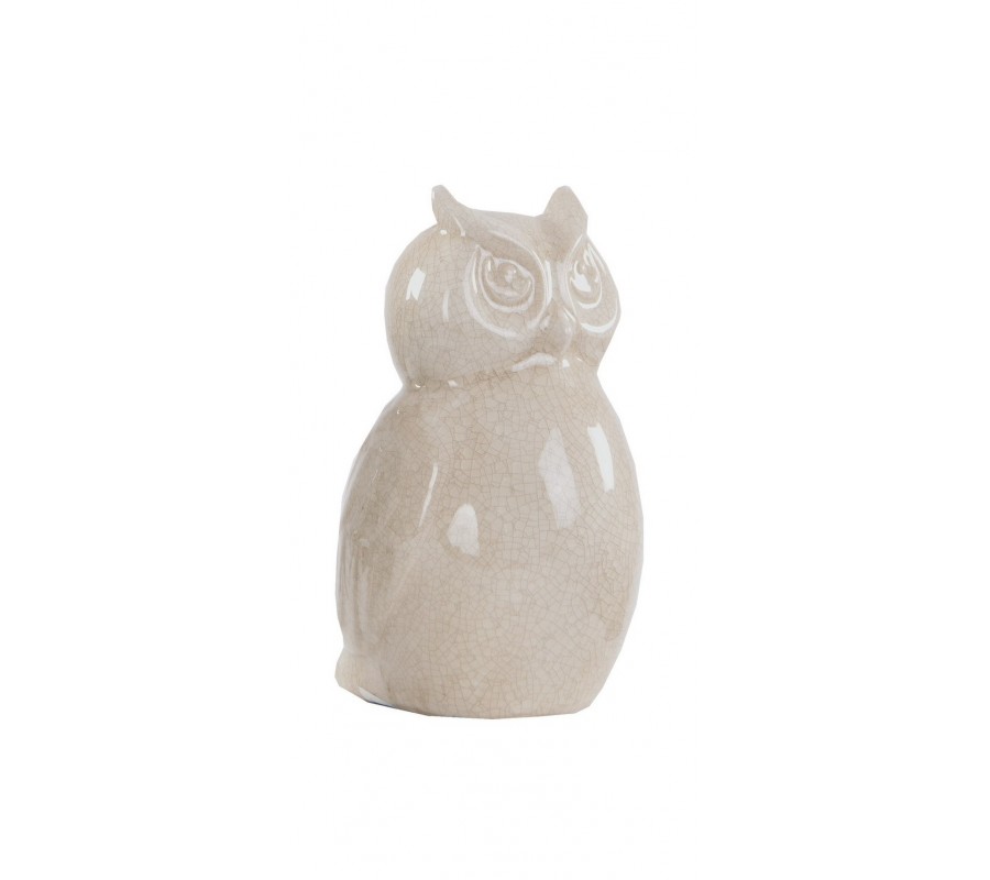 Dizajnová vintage keramická dekorácia Hester v tvare sovy v béžovej farbe 18 cm
