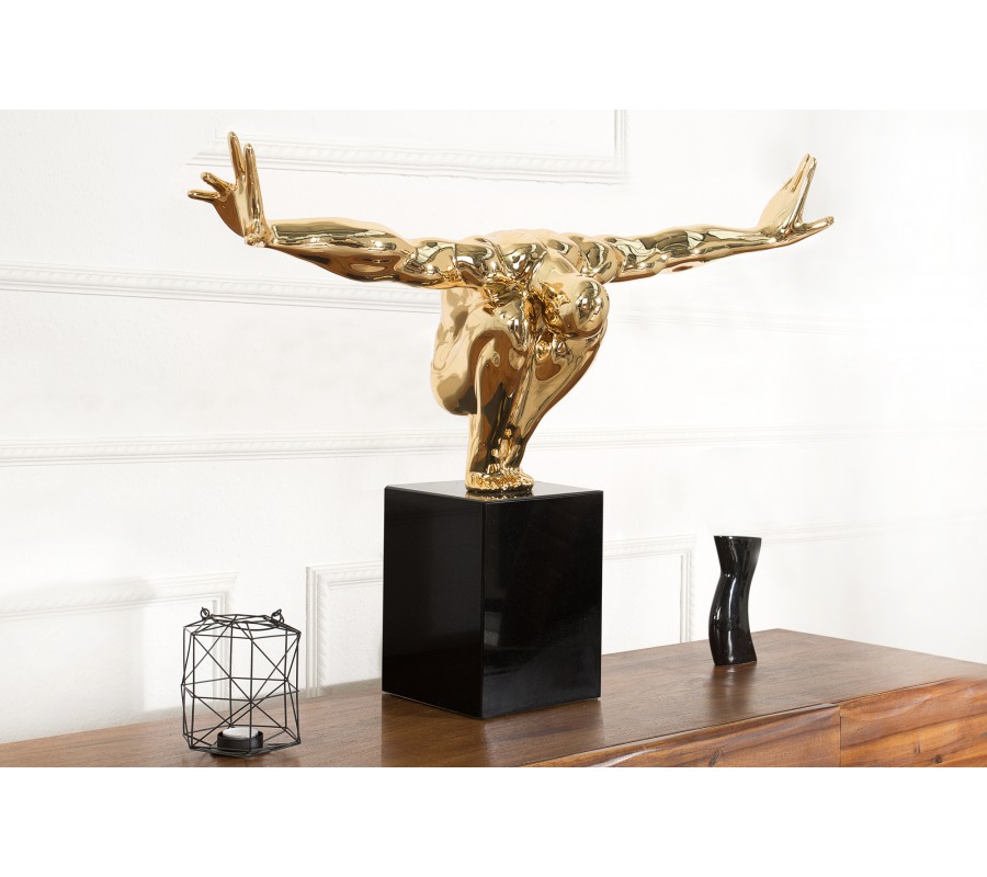 Jedinečná luxusná soška športovca zlatá je ručne vyrobená a tak je každá socha unikát. Stojí na kvalitnom mramorovom podstavci. Soška športovca rozžiari každý interiér svojím vzhľadom a zlatou farbou, v ktorej je soška prevedená. Rozmery: 75 cm x 55 cm x 25 cm (ŠxVxH)  Materiál: polyresin lakovaný, mramor.