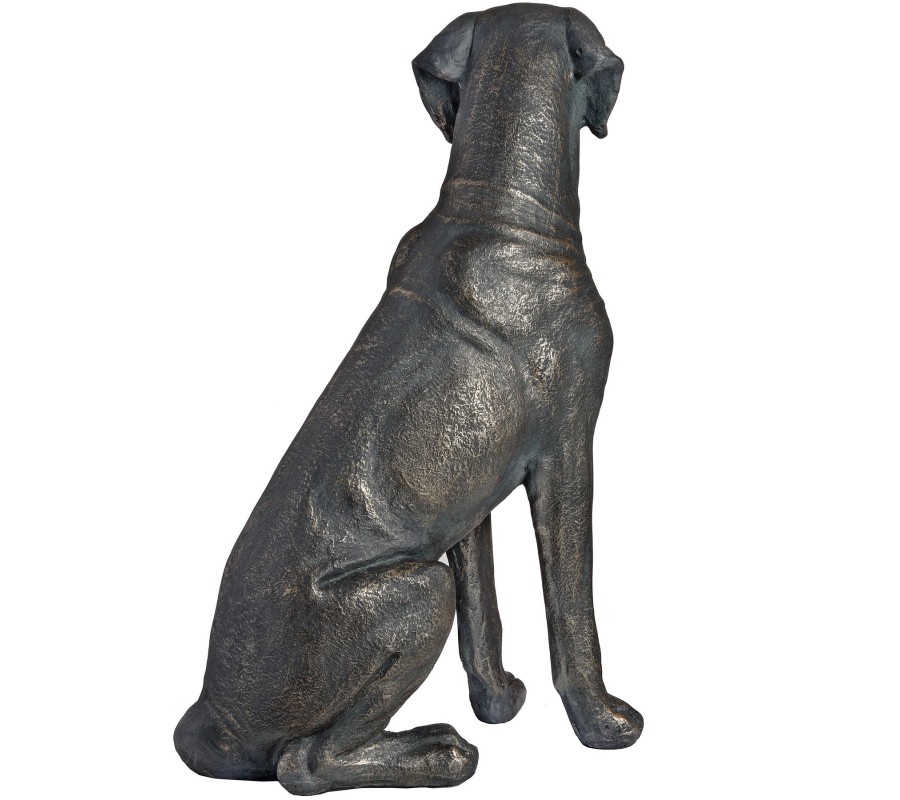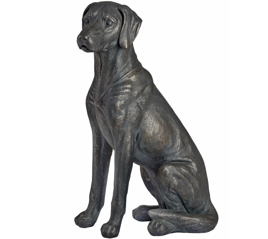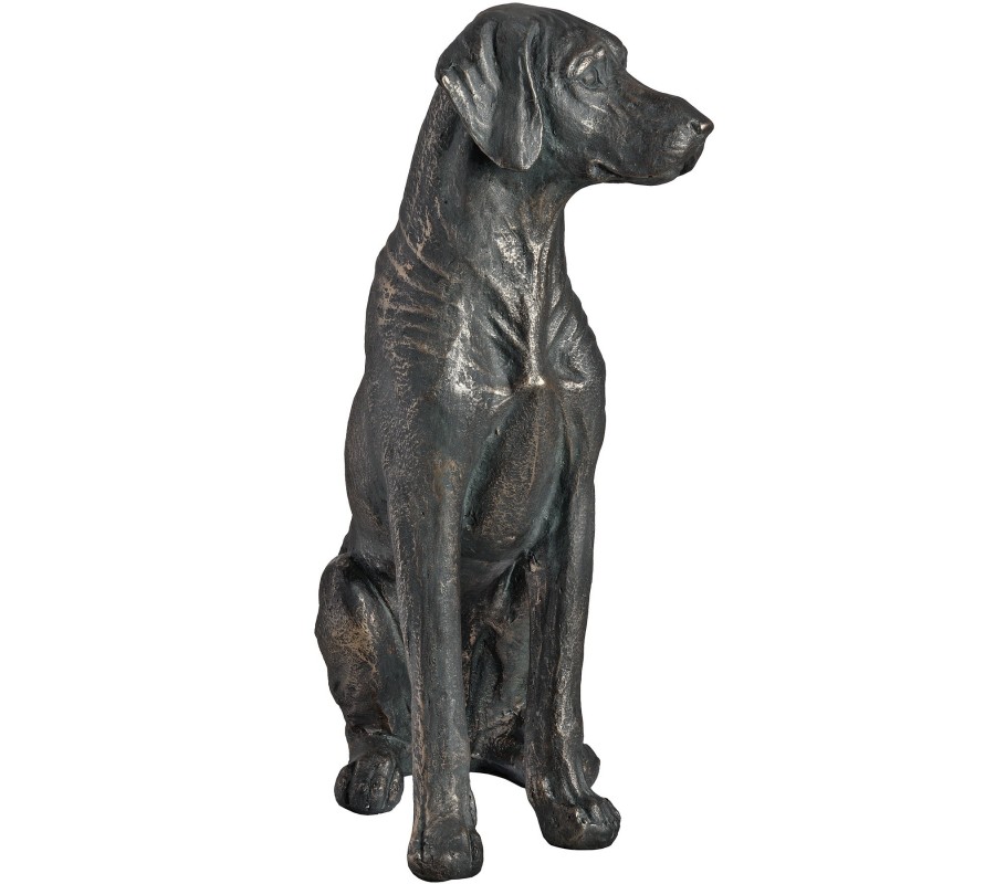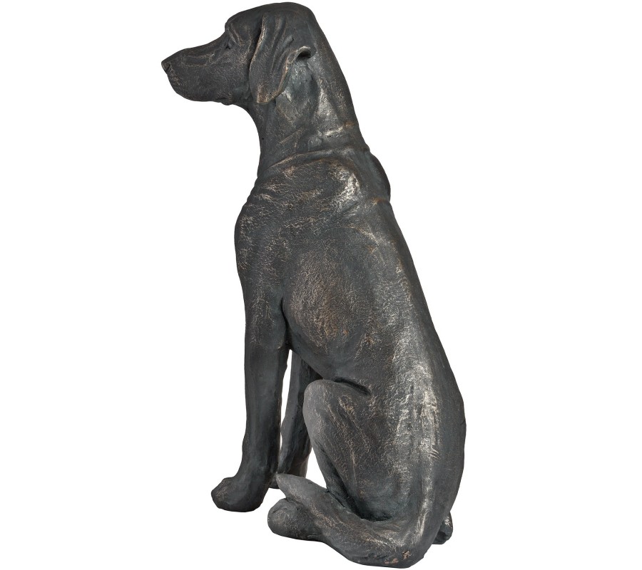 Krásný moderný sediaci pes v tmavom prevedení je nielen určeným pre milovníkov zvierat, ale aj pre ľudí, ktorý sa hcú pochváliť modernými štýlovými kúskami. Je vhjodný do akéhokoľvek interiéru. Materiál z ktorého je vyrobená je veľmi odolný a dobre odoláva vplyvom počasia. Preto je možné ju postaviť aj do vonkajších priestorov. Socha je vysoká 65cm. Miestnostiam dodá pocit bezpečia a pohodlia.