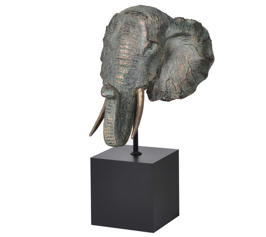 Štýlová dekorácia Elephant v tvare slonej hlavy na masívnom podstavci41cm
