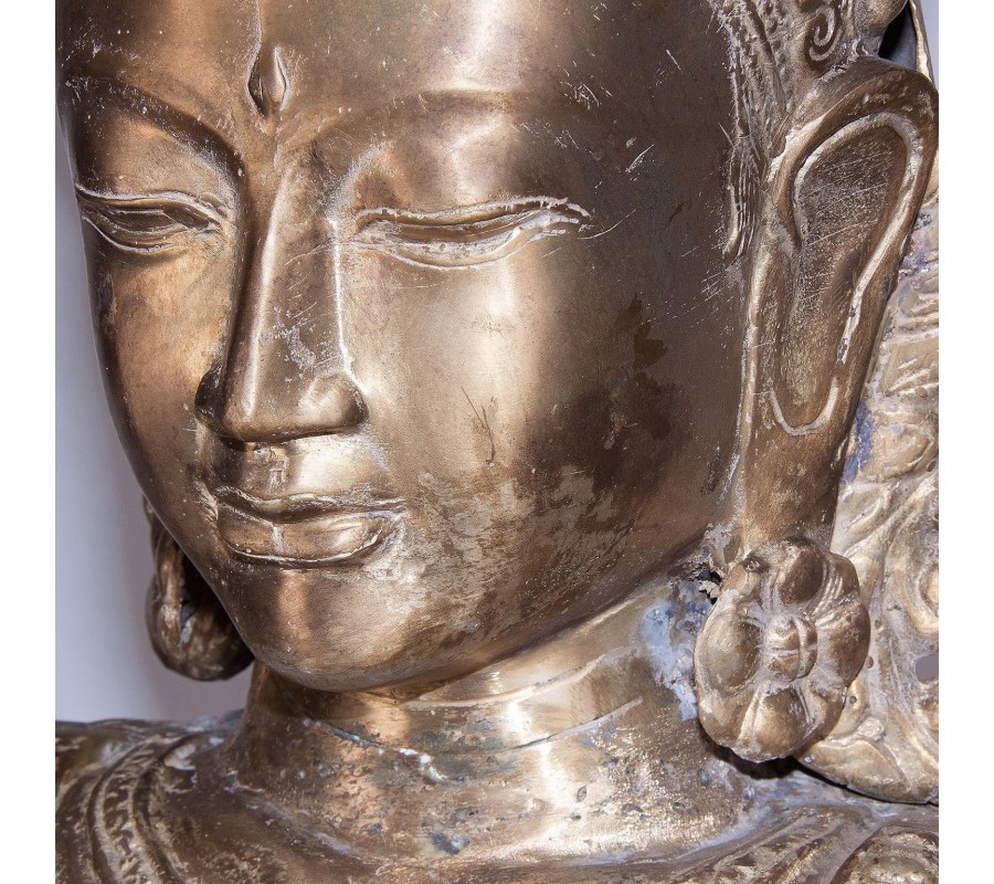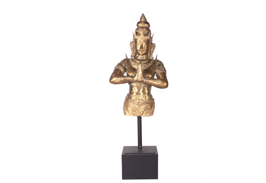 Jedinečná vysoká socha Diosa sa stane luxusným doplnením vašich štýlových domácností či reprezentatívnych priestorov prevádzok a firiem. Výrazná zlatá časť s orientálnym antickým motívom je vyrobená z kovu a doplnená praktickou podstavou s minimalistickým dizajnom, ktorý jej celkový vzhľad značne odľahčuje a dodáva mu svieži moderný nádych. Nemusíte sa báť sochu kombinovať s nadčasovými modernými prvkami v obľúbenom Art-deco štýle. Skvele vynikne v priestoroch s povrchmi z kameňa, exotických drevín a zlatých kovových dekorácii.