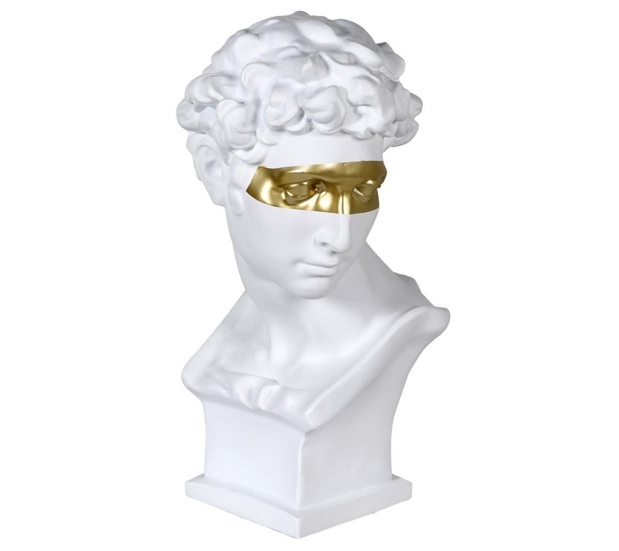 Klasický tvar busty Cabez je inšpirovaný krásou antiky a dotvorený odvážnou farebnou úpravou. Táto výrazná biela dekorácia s luxusným zlatým detailom v podobe očnej masky sa bude vynímať medzi prvkami dekoratívneho Art-deco štýlu, dodá šťavu aj minimalistickému modernému interiéru, no zaručene nestratí sa ani v eklektických priestoroch plných hravých farieb, materiálov a vzorov. Dekoratívna busta Cabez do interiéru prináša antický pôvab a má schopnosť očariť už na prvý pohľad. Busta Cabez je vyrobená z kvalitnej a odolnej živice, vďaka čomu je napriek svojmu objemu značne odľahčená a nenesie ťažkú váhu materiálov z kameňa.