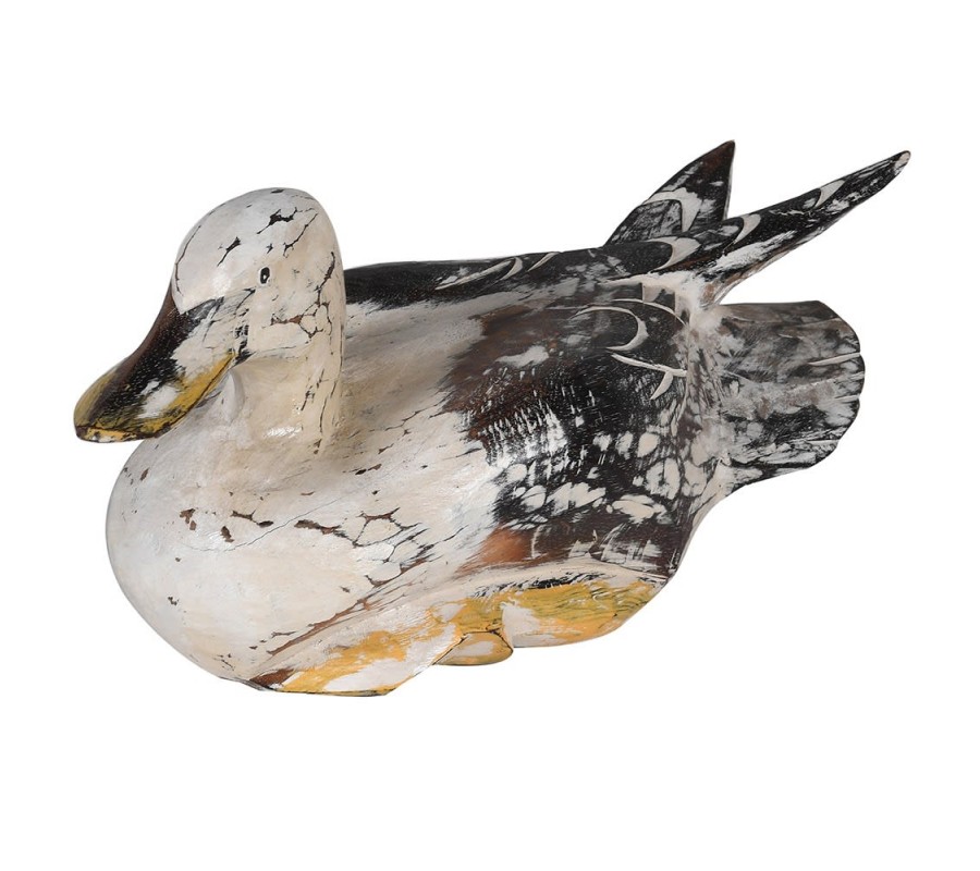 Originálna dekoratívna soška Anatra je vyrobená z masívneho teakového dreva a bambusu s povrchovou úpravou v čierno-bielej farbe. Zámerne ošúchaný vintage povrch je ozvláštnený farebným kontrastom v podobe žltých detailov. Dekoráciou Anatra v tvare divokej kačice je vhodné dotvoriť príjemnú atmosféru vintage či vidieckych interiérov.