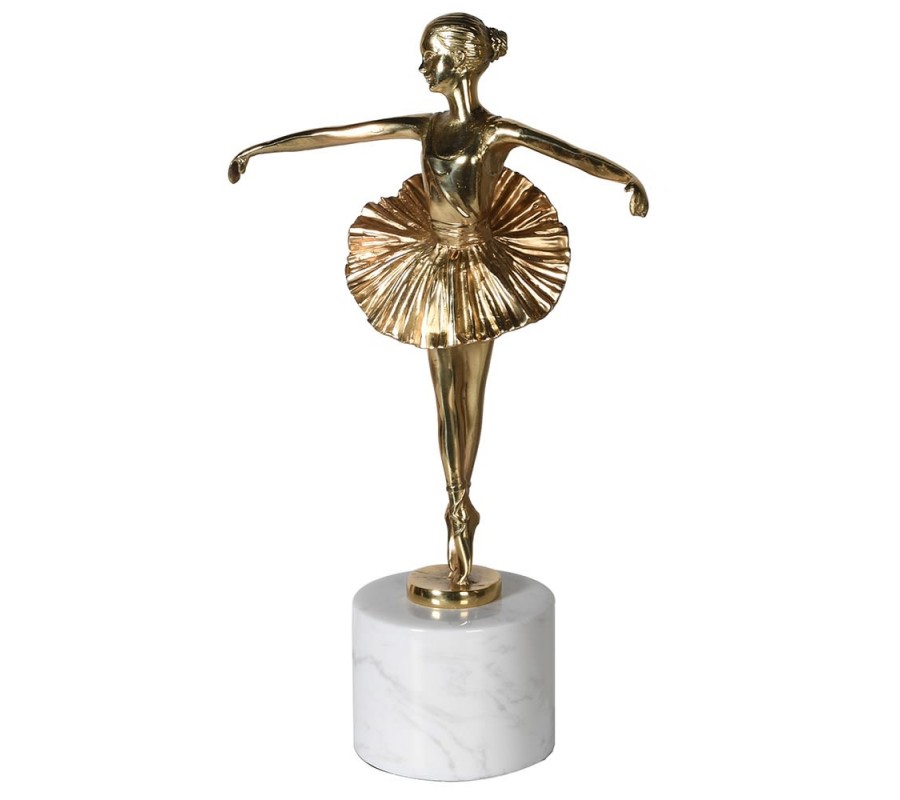 Jedinečné ťažítko Lake v tvare tancujúcej baleríny poteší každého milovníka baletu a rozžiari deň nádejným tanečníkom. Ťažítko je vyrobené z mosadze v zlatom odtieni a doplnené luxusným podstavcom z bledého mramoru v tvare valca. Balerína v točiacej sa pozícii s nadvihnutou sukničkou vytvára dojem pokojného a pôvabného pohybu, ktorý vo vašom interiéri zaručene zapôsobí inšpiratívnym dojmom.