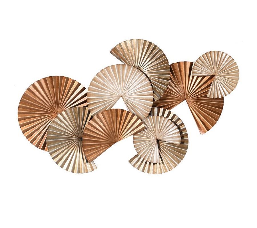 Jedinečná nástenná dekorácia Fane v podobe asymetrického zoskupenia kruhových vejárov sa stane dokonalým doplnením luxusných priestorov v lesklom Art-deco štýle. Strieborno-bronzový odtieň tejto dekorácie vyrobenej zo železa vynikne najmä pri dekorovaní stien v tmavších a sýtejších odtieňoch. Skvele sa bude dopĺňať s odtieňmi smaragdovo zelenej, zafírovo modrej či rubínovo červenej farby.