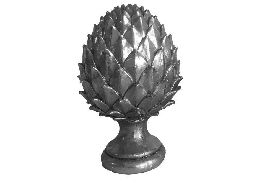Dizajnová strieborná dekoračná soška Borovicová šiška z keramiky 23cm