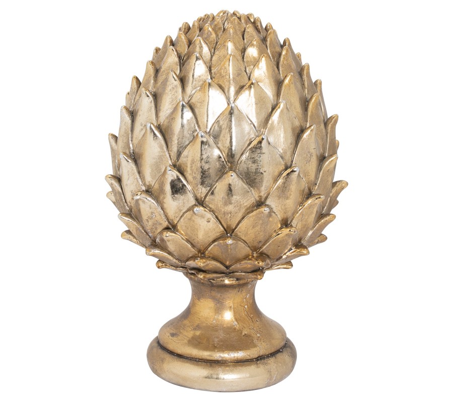 Štýlová keramická soška Borovicová šiška v zlatej farbe 30cm