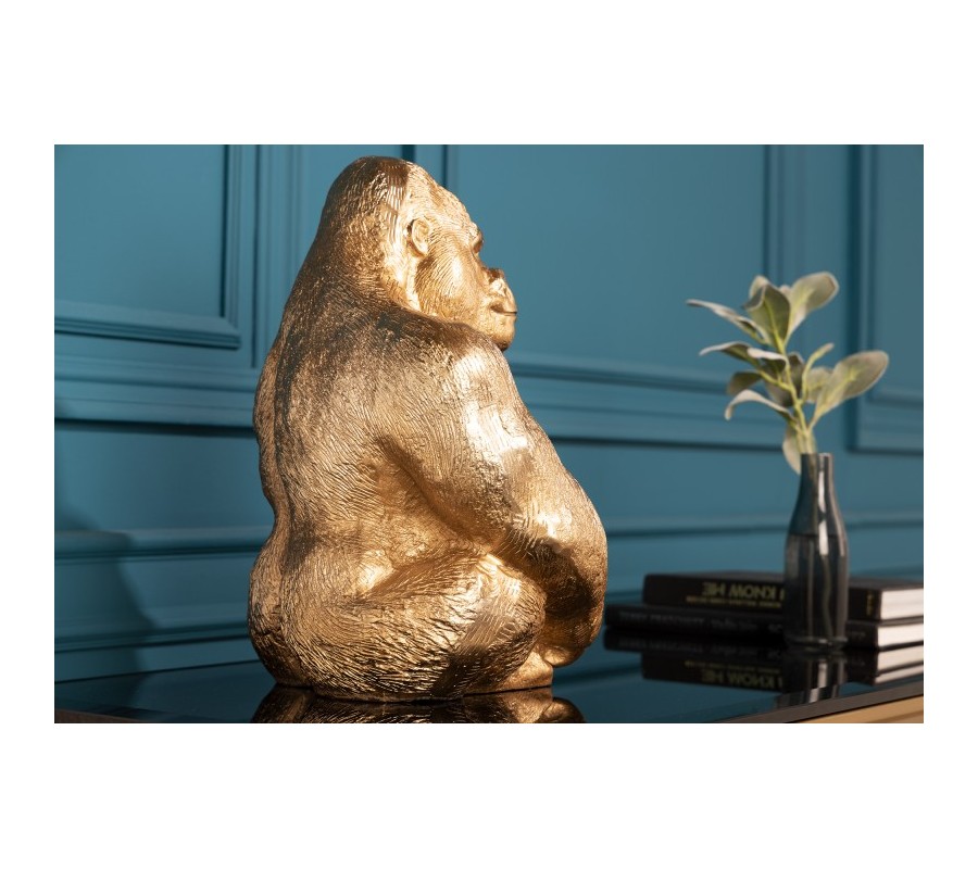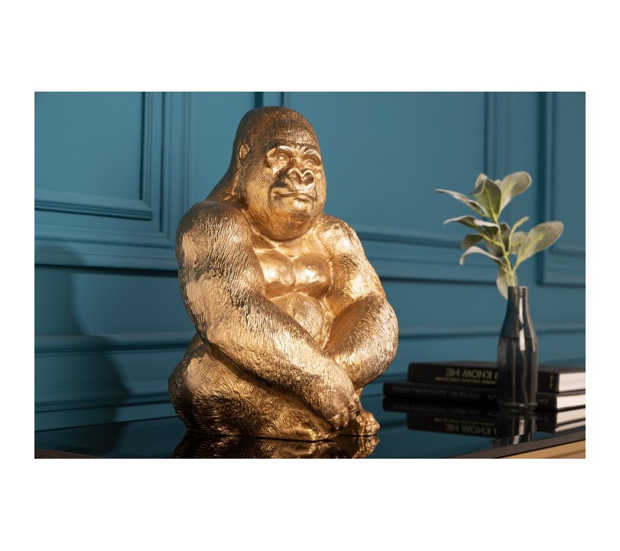 Luxusná art deco dekoračná soška gorily Wilde z kovu v zlatej farbe 43cm