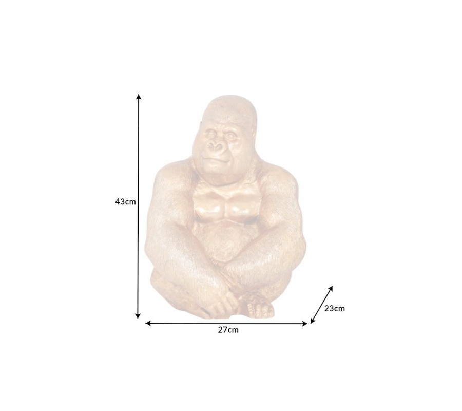 Štýlová dekorácia do interiéru v podobe sošky gorily Wilde je kúskom, ktorý spestrí vaše poličky, komodu či konzolu. Vhodne poslúži aj ako milý darček pre všetkých, ktorí majú radi dizajnové prvky v art deco štýle. Soška Wilde vyrobená z kovu zaujme svojím detailným spracovaním a prevedením v žiarivej zlatej farbe. Osloví vás tiež dôrazom na detail a precíznym ručným vypracovaním. Vďaka tomu krásne doplní predovšetkým priestory ladené v modernom či art deco štýle. Soška Wilde vynikne napríklad na kontrastnej čiernej poličke, sklenenej alebo zrkadlovej konzole alebo na masívnom príručnom stolíku. Vašu miestnosť zaručene spestrí a zútulní!