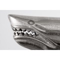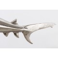 Štýlová soška žralok Perry je skvelým kúskom pre všetkých milovníkov vodného sveta. Vhodne poslúži aj ako darček a vďaka elegantnému prevedeniu krásne vynikne v sklenených vitrínach, na poličkách či komodách. Je vyrobená z kovovej zliatiny a nesie sa v dizajnovej striebornej farbe. Dôraz na detail a precízne spracovanie jej dodáva autentický vzhľad. Umiestnením na obdĺžnikovej podstave je zabezpečená skvelá stabilita. Soška Perry ideálne doplní moderne ladené obývačky či pracovne.