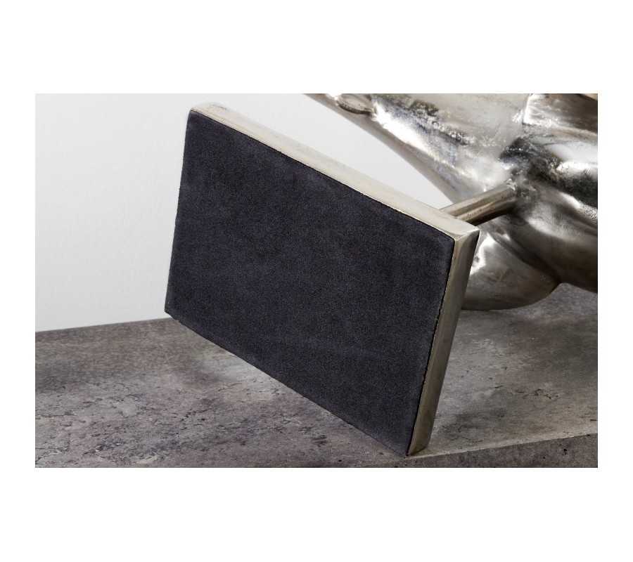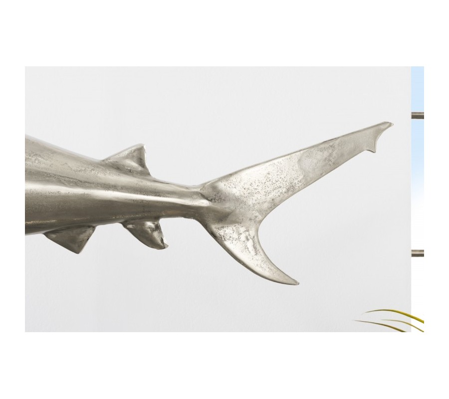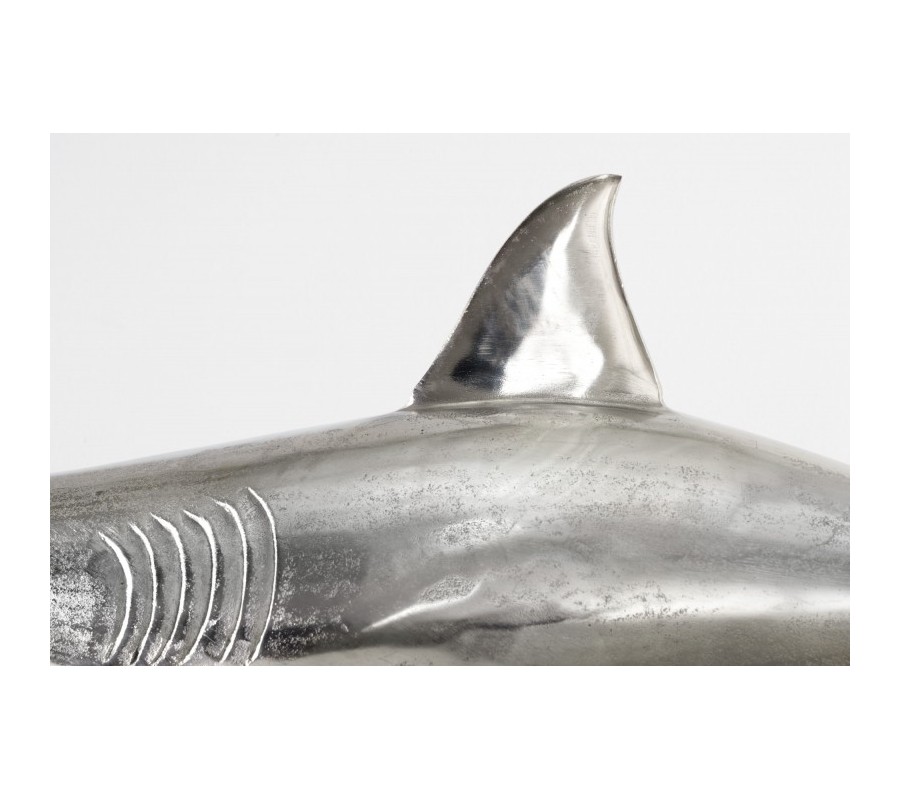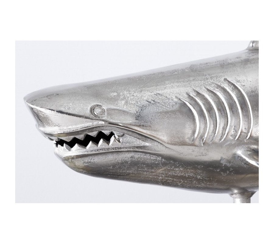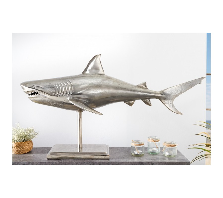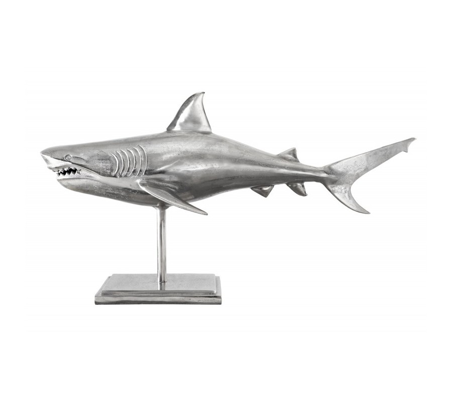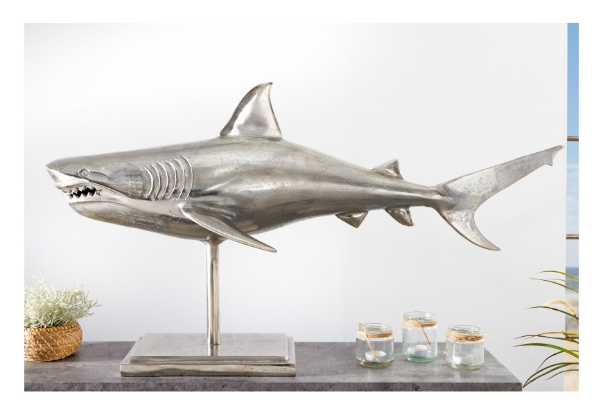 Štýlová dekorácia Perry predstavuje sošku žraloka, ktorá poteší všetkých milovníkov vodného sveta. Tento exkluzívny kúsok krásne vyzdobí vašu vitrínu, poličku či komodu v obývačke i pracovni. Soška je vyrobená z kovovej zliatiny a je umiestnená na obdĺžnikovom podstavci. Elegantné strieborné prevedenie a dôraz na detail jej dodáva autentický vzhľad. Vďaka svojej veľkosti bude vo vašich priestoroch pôsobiť dominantným dojmom a zaručene upúta pozornosť nejedného návštevníka!