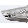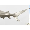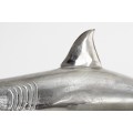 Dizajnová strieborná dekorácia žralok Perry z kovovej zlatiny 103cm