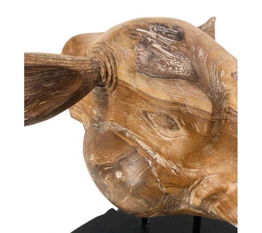 Hlava je vyrobená z kvalitného masívneho teakového dreva v pôvodnej hnedej farbe materiálu. Na dekorácií je viditeľná dyha, čo dodáva dekorácií zaujímavejší vizuál. Hlava je postavená na dvoch kovových tyčiach , ktoré sú upevnené do podstavy z teakového dreva v čiernej matnej farbe.