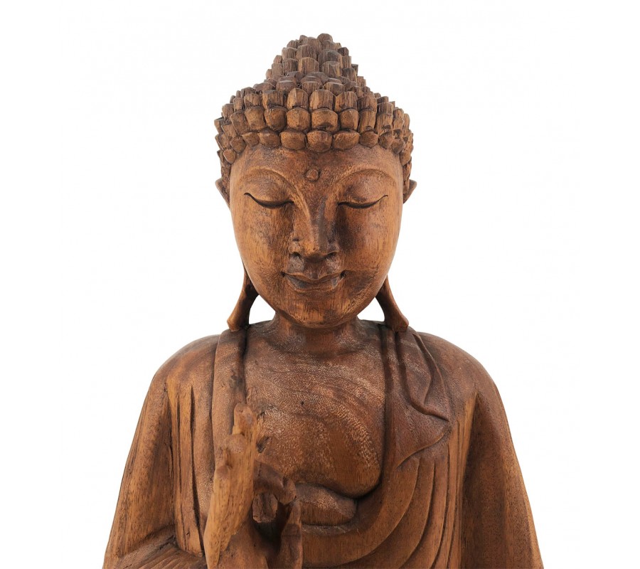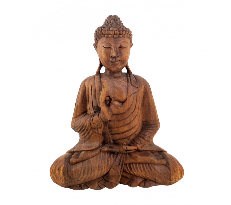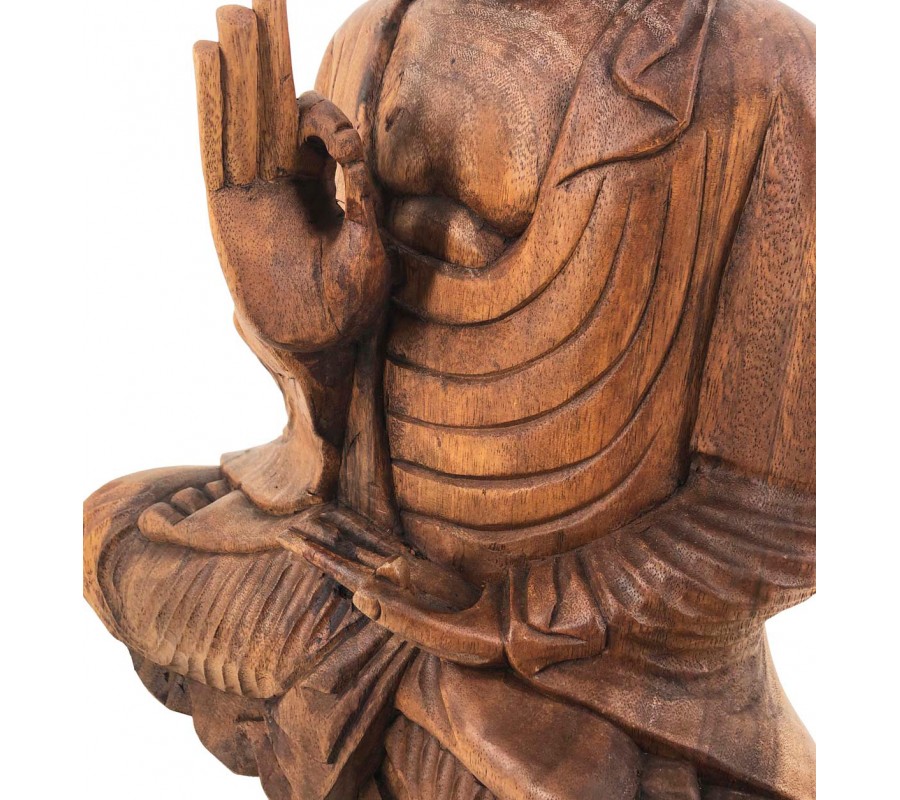 Dizajnová dekorácia v podobe drevenej sošky budhu je jedinečný doplnok pre vašu domácnosť, ktorá obzvláštni celkový dojem v priestore. Budha bol zakladateľ jedného z piatich najrozšírenejších svetových náboženstiev - budhizmu. Všeobecne je Budha symbolom mieru, osvietenia a šťastia a hovorí sa, že jeho sochy prinesú dobré zdravie a prosperitu. Podľa čínskeho učenia Feng Shui vnesú sošky Budhu do domácnosti pozitívnu energiu a životnú silu čchi. Socha je prekrásnou dekoráciou do akéhokoľvek interiéru.