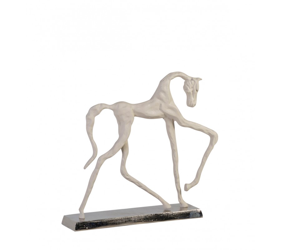 Moderná surrealistická soška koňa Zaldibat v bielej farbe z kovovej zliatiny 56 cm