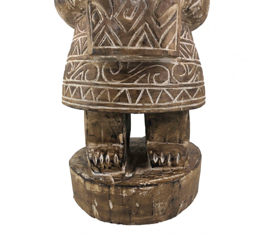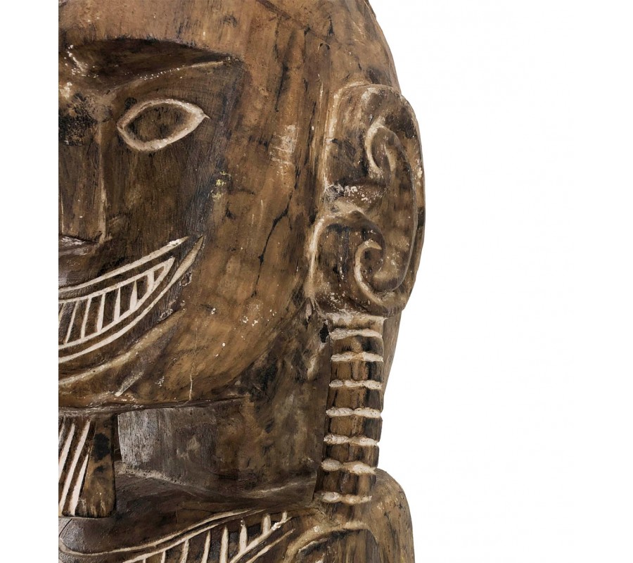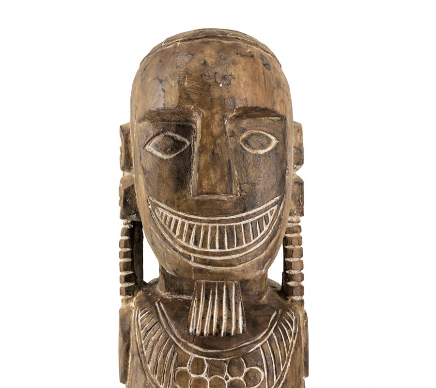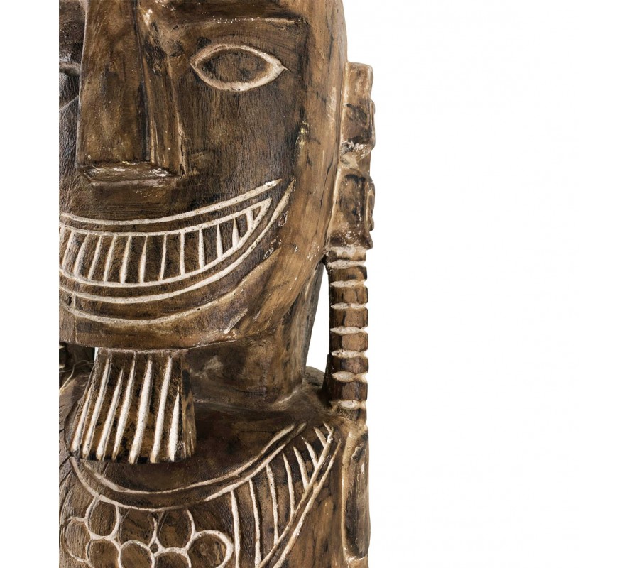 Dekorácia predstavuje figúru v totemovom prevedení. Dizajn je inšpirovaný východoázijským a maorským primitívnym umením. Na prvý pohľad vás upúta expresívny výraz tváre s hravým širokým úsmevom, vďaka ktorému vám soška pomôže navodiť v interiéri pozitívnu atmosféru. Odev figúry je zdobený bohatými ornamentmi, charakteristickými pre etno doplnky.