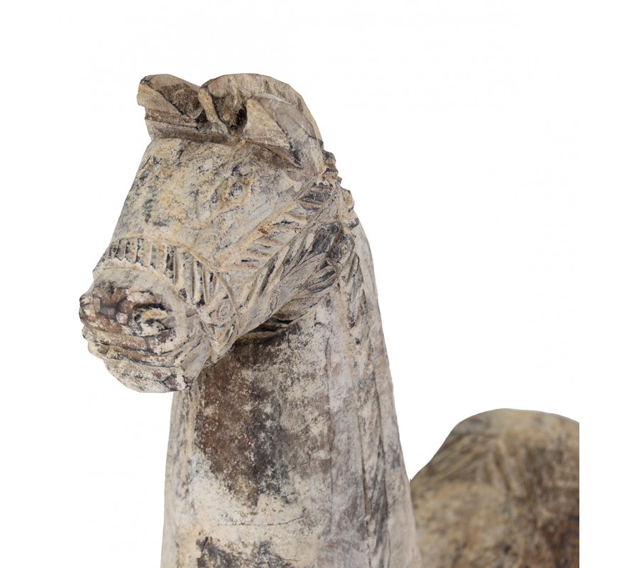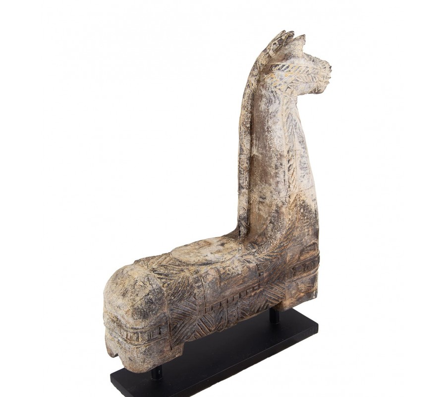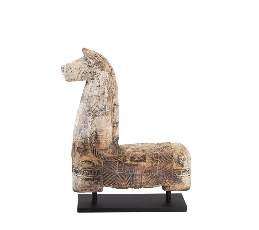 Dizajnová etno socha Ranunculo v tvare koňa s vyrezávaným zdobením z mangového dreva v odtieňoch hnedej 60 cm