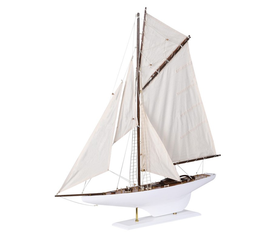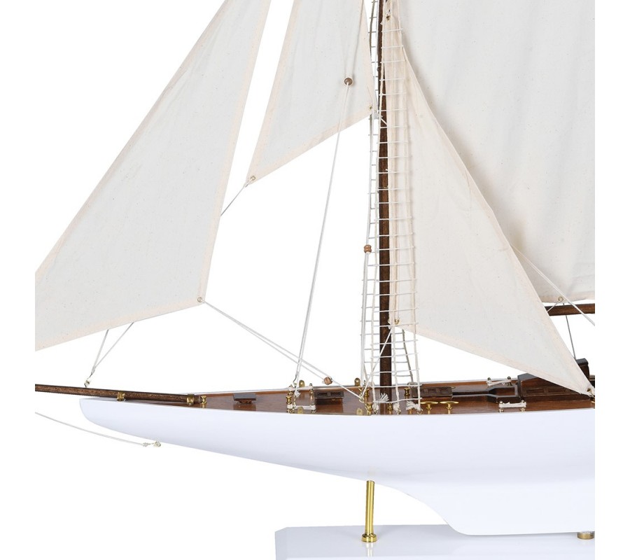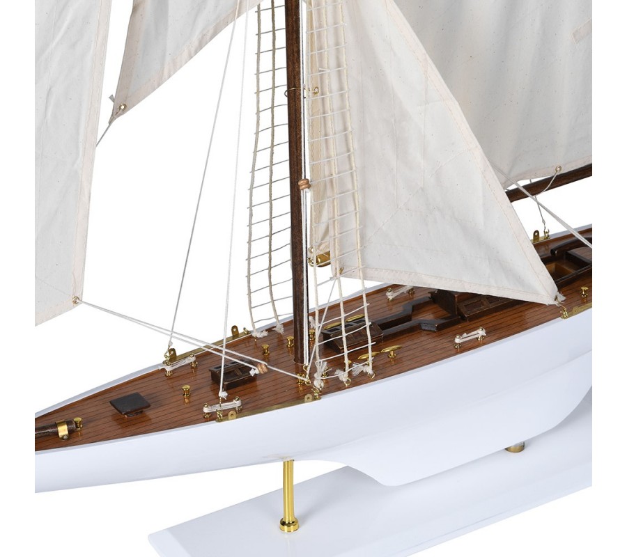 Dekorácia plachetnice Marina je štýlový interiérový doplnok v koloniálnom dizajne, ktorý zaujme prepracovanými detailmi. Korpus je vyrobený z dreva s hladkou povrchovou úpravou v bielej farbe, zatiaľ čo paluba je ponechaná v prírodnom hnedom odtieni.