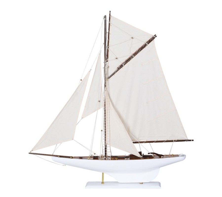 Koloniálna drevená dekorácia námornej plachetnicovej lode Marina v bielej farbe 98 cm