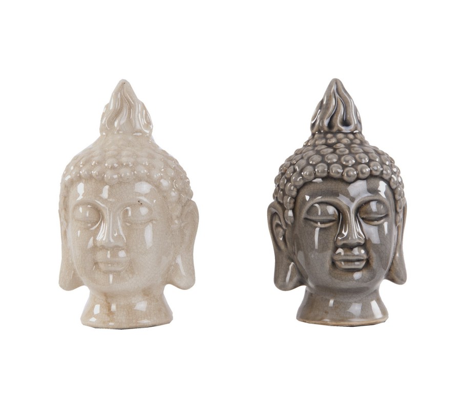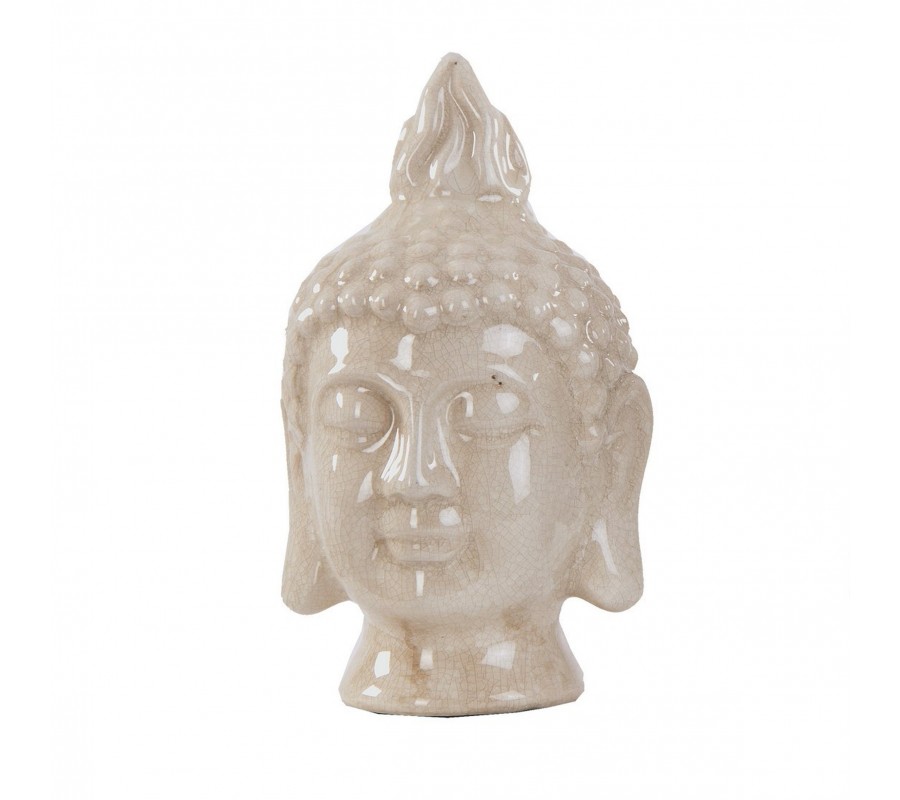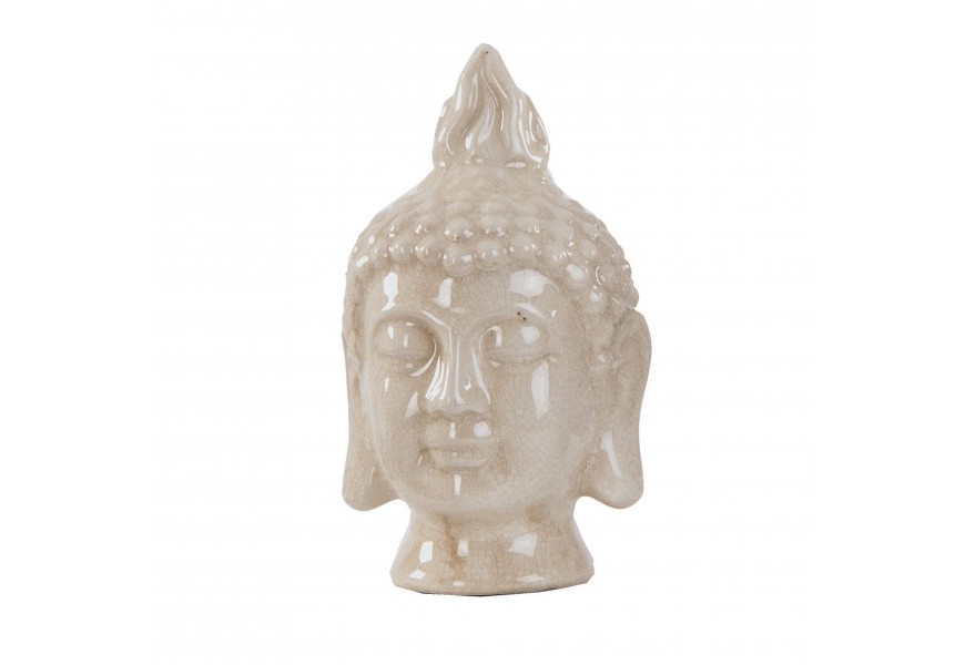 Dizajnová etno dekorácia Budha v tvare busty v béžových odtieňoch s vintage efektom popraskanej glazúry 20 cm