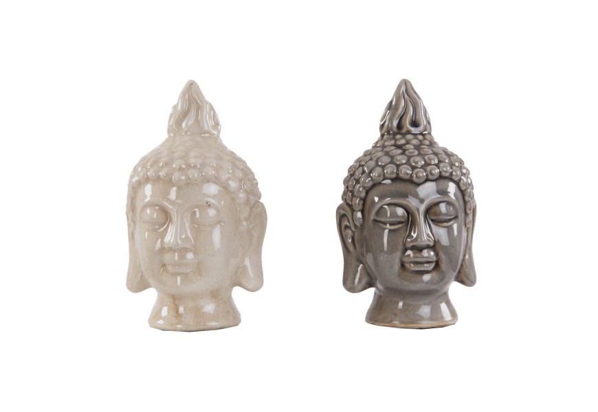 Dizajnová etno dekorácia Budha v tvare busty v béžových odtieňoch s vintage efektom popraskanej glazúry 20 cm