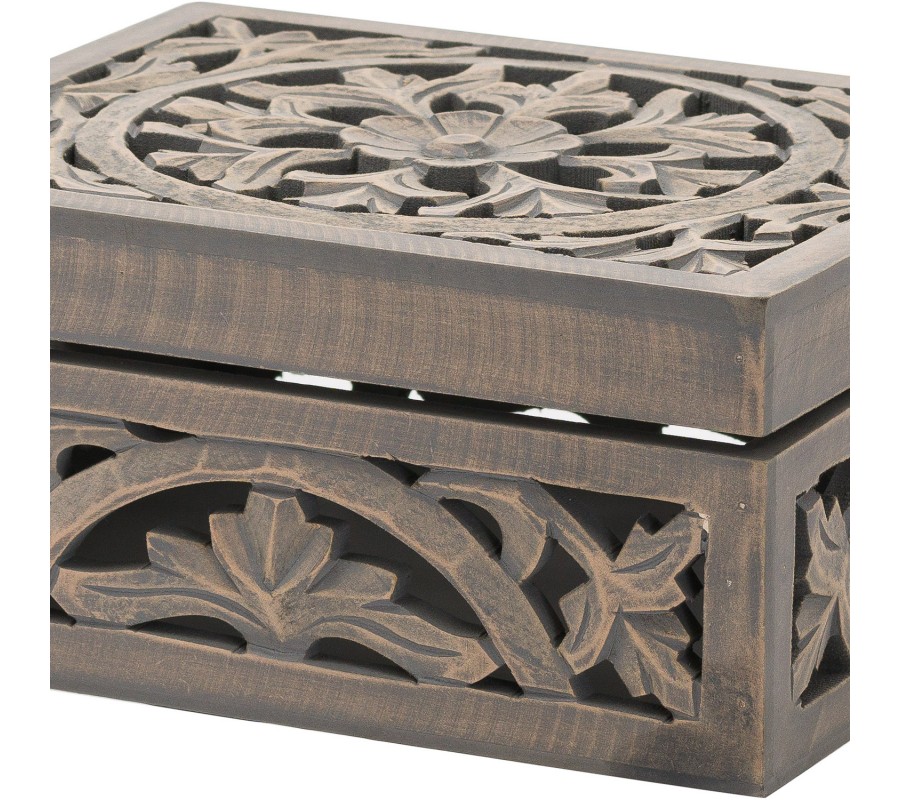 Luxusná a nadčasová drevená šperkovnica Tanxil I disponuje vkusným a jemným florálnym motívom, vyrezávaným do jej stien. Šperkovnica Tanxil dokonale zapadne do interiérov ladených v orientálnom či vintage štýle na nadčasových komodách, tv stolíkoch, či konzolách a toaletných stolíkoch.